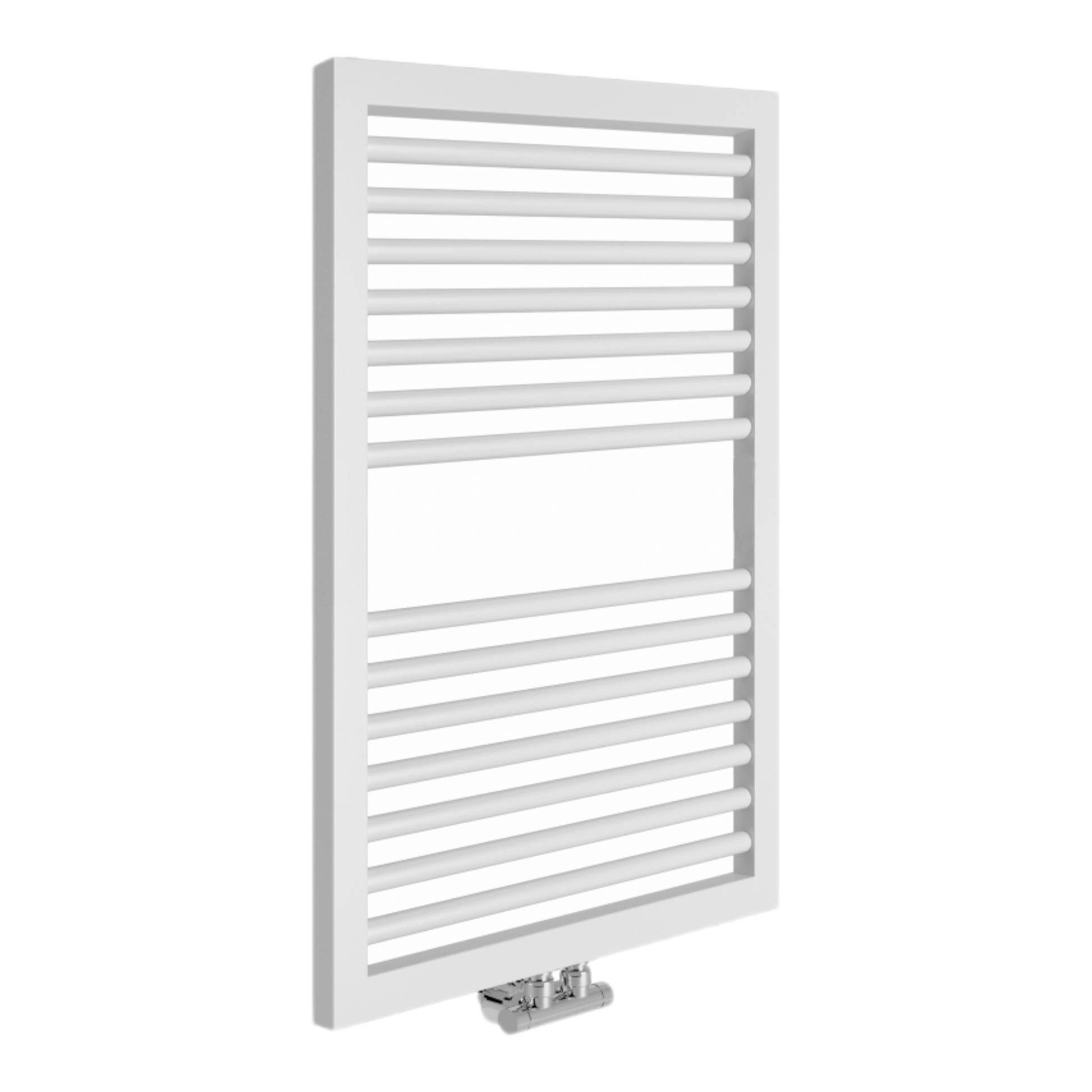 - Steel bathroom radiator with side distributors 40x30 mm and DM 22 mm and 22x22 mm round tube with minimal design.