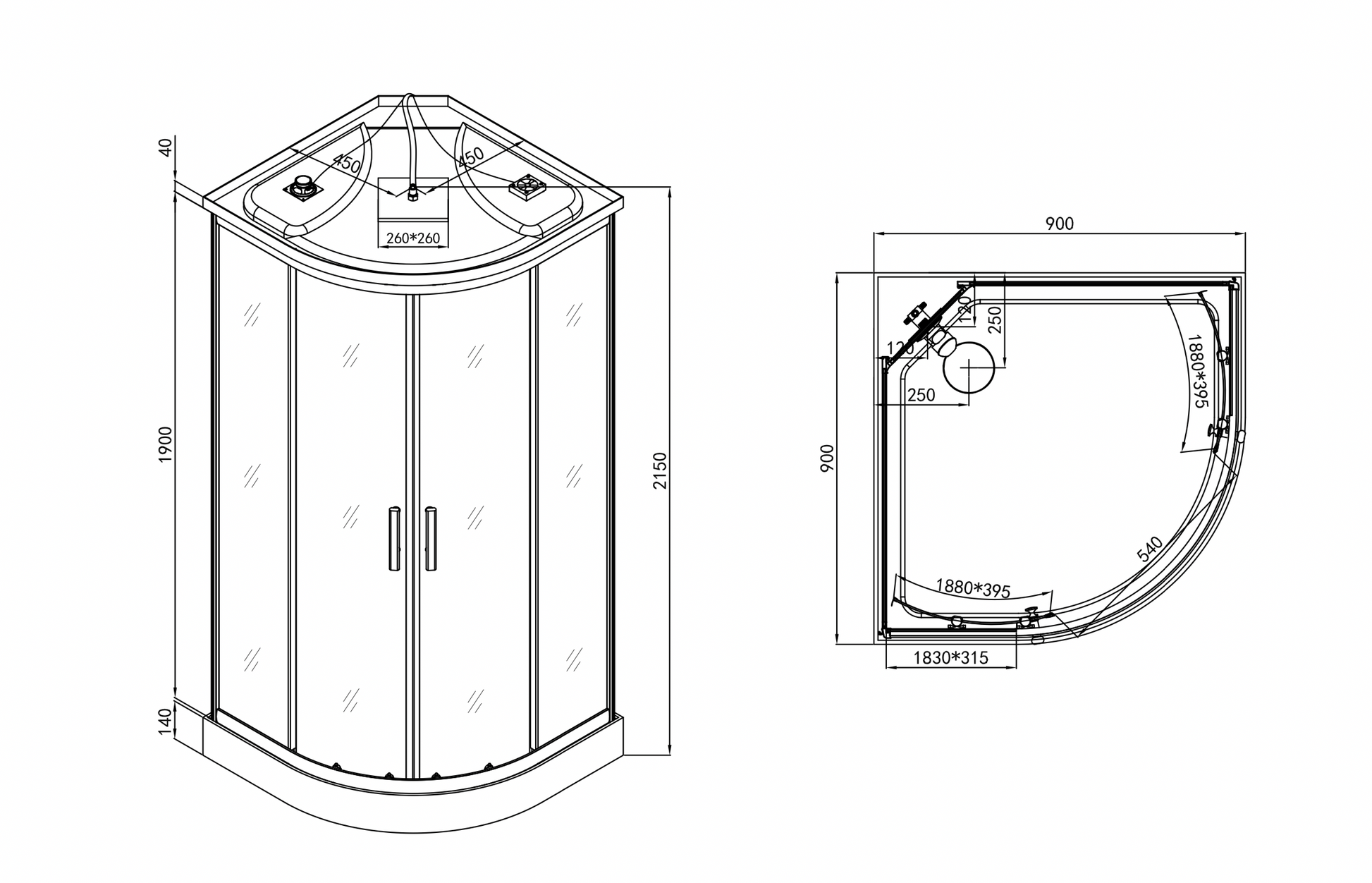 Complete shower enclosure TREND 1 with quick assembly 90x90x215 cm