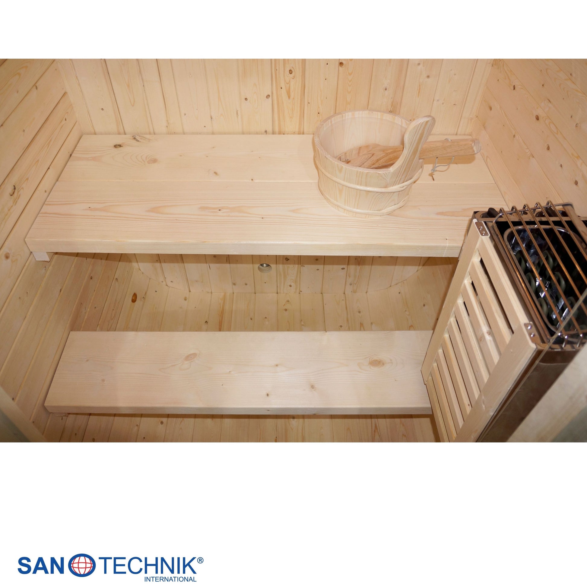 To ensure that the cabin heats up particularly quickly and you can fully enjoy your personal sauna moment alone or in a cozy atmosphere with a partner, it is equipped with a 3.6 kW heater.