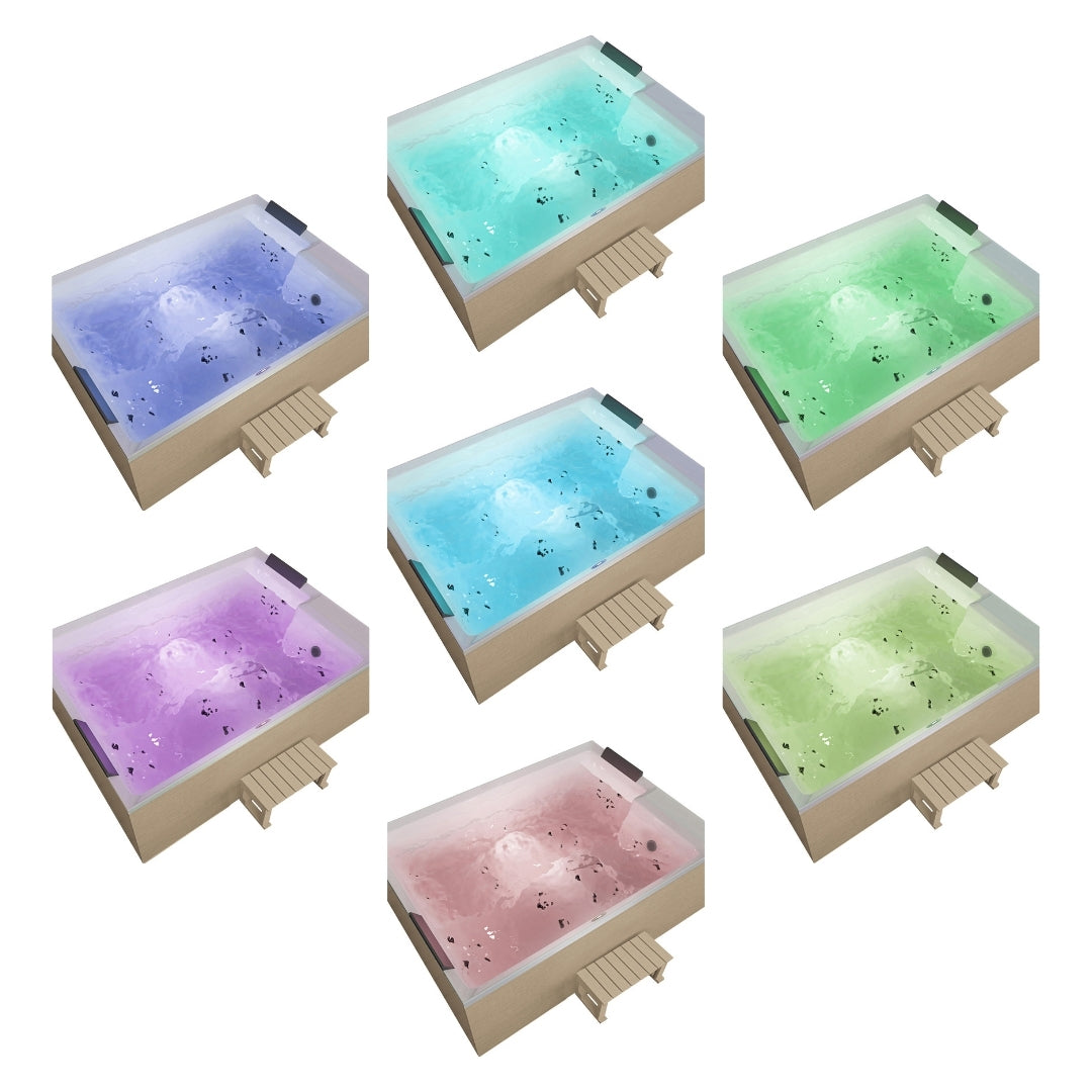 Jeder Muskel wird von den 24 wohltuenden Massagedüsen intensiv massiert während das Unterwasserlicht je nach Stimmung eine aktivierende, entspannende oder schmerzlindernde Wirkung hat.