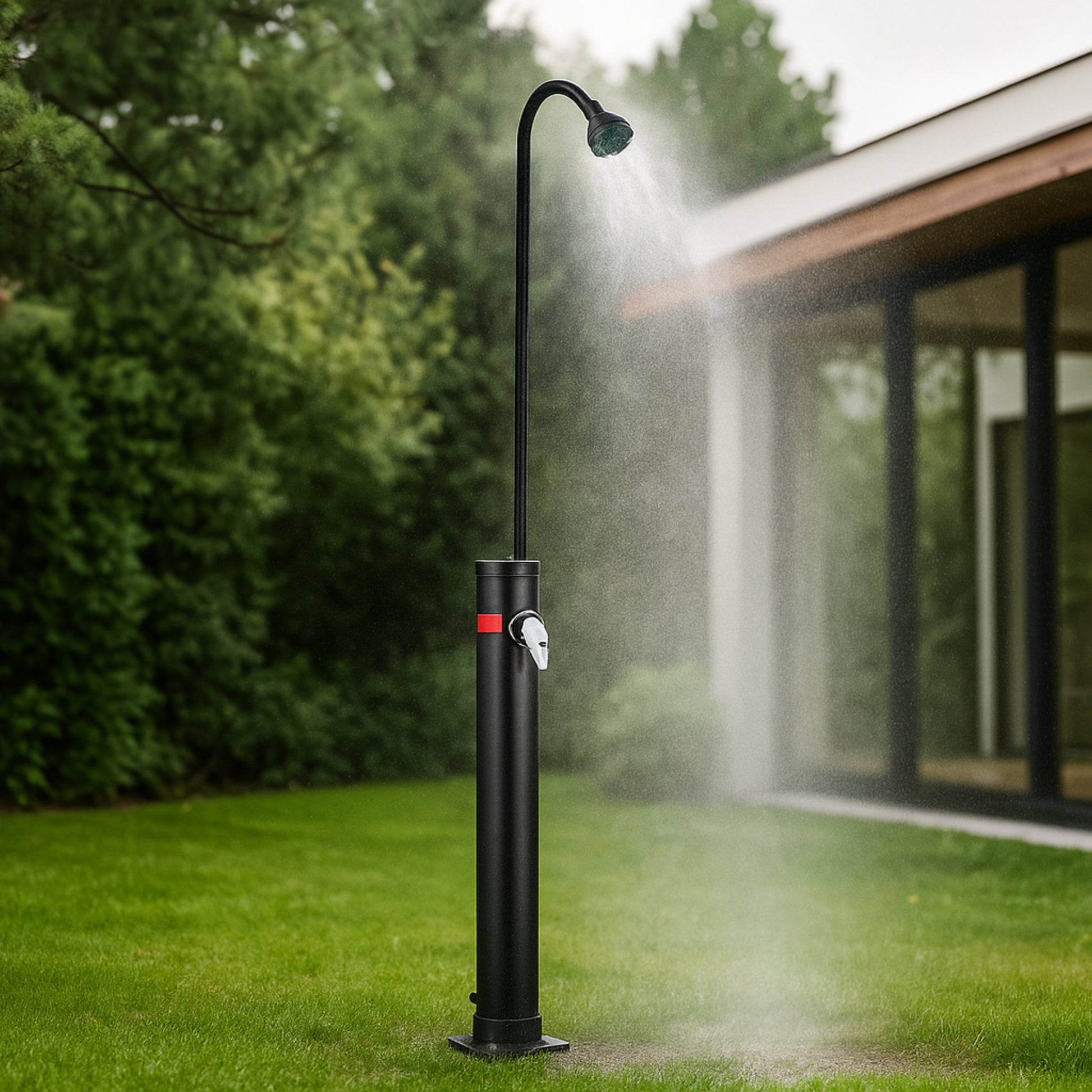 The elegant 10L outdoor solar shower in black fits perfectly into any garden or pool area. Its sleek, space-saving design makes it a visual highlight and a functional must-have for the summer.