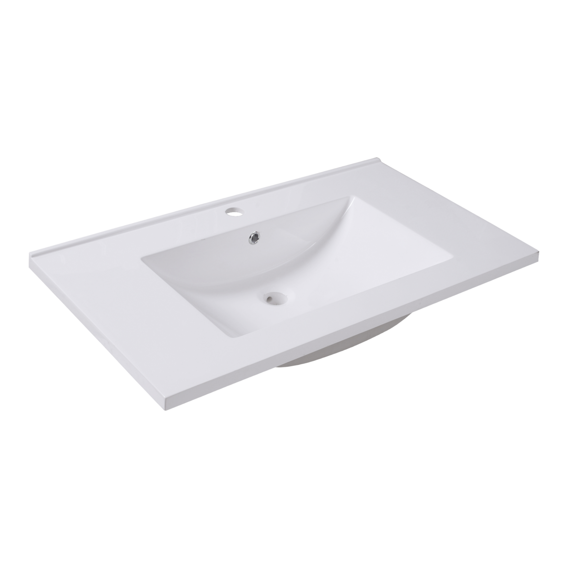 The sink is made of mineral cast. The basin has a semicircular shape, ensuring water always flows smoothly to the drain. The basin also features an overflow.