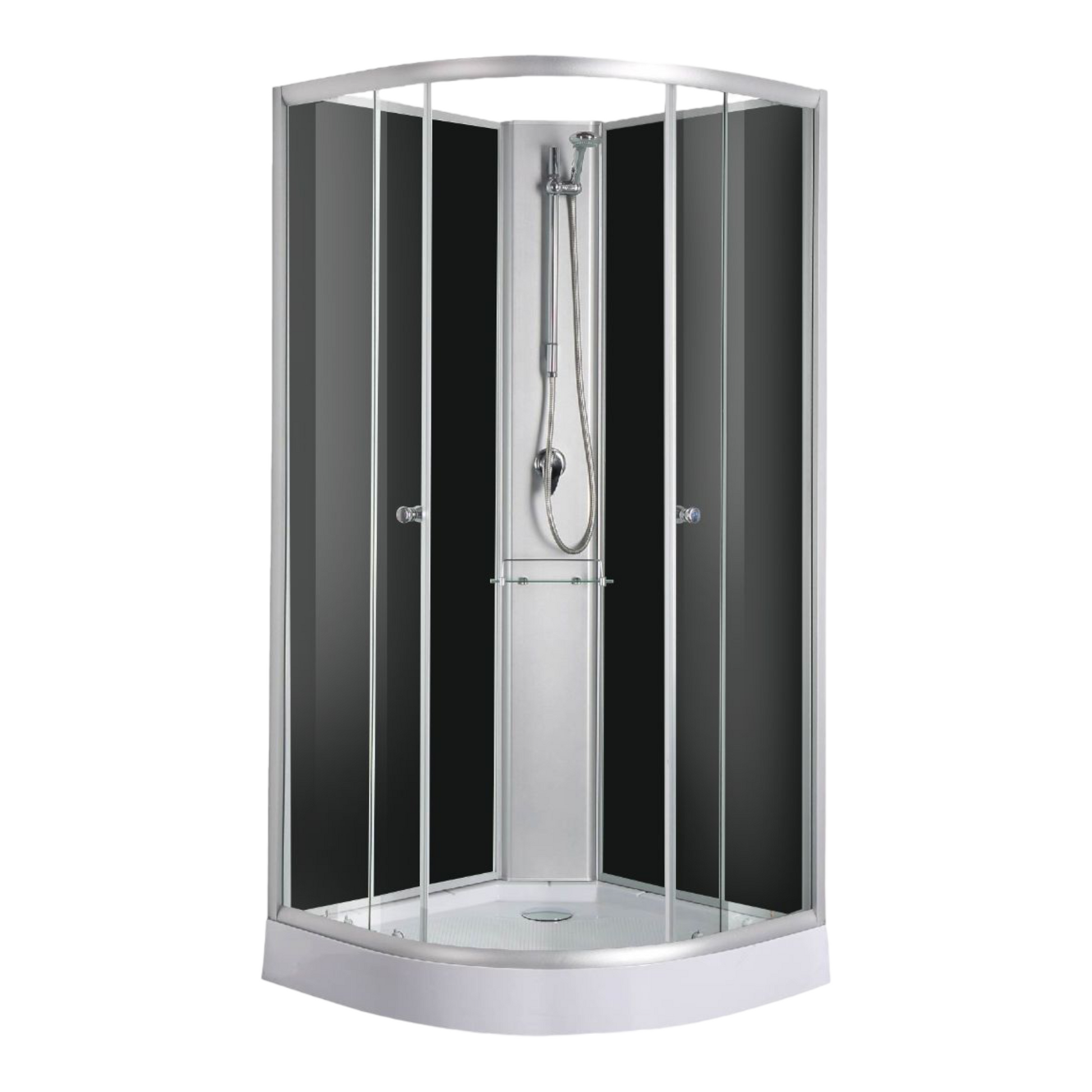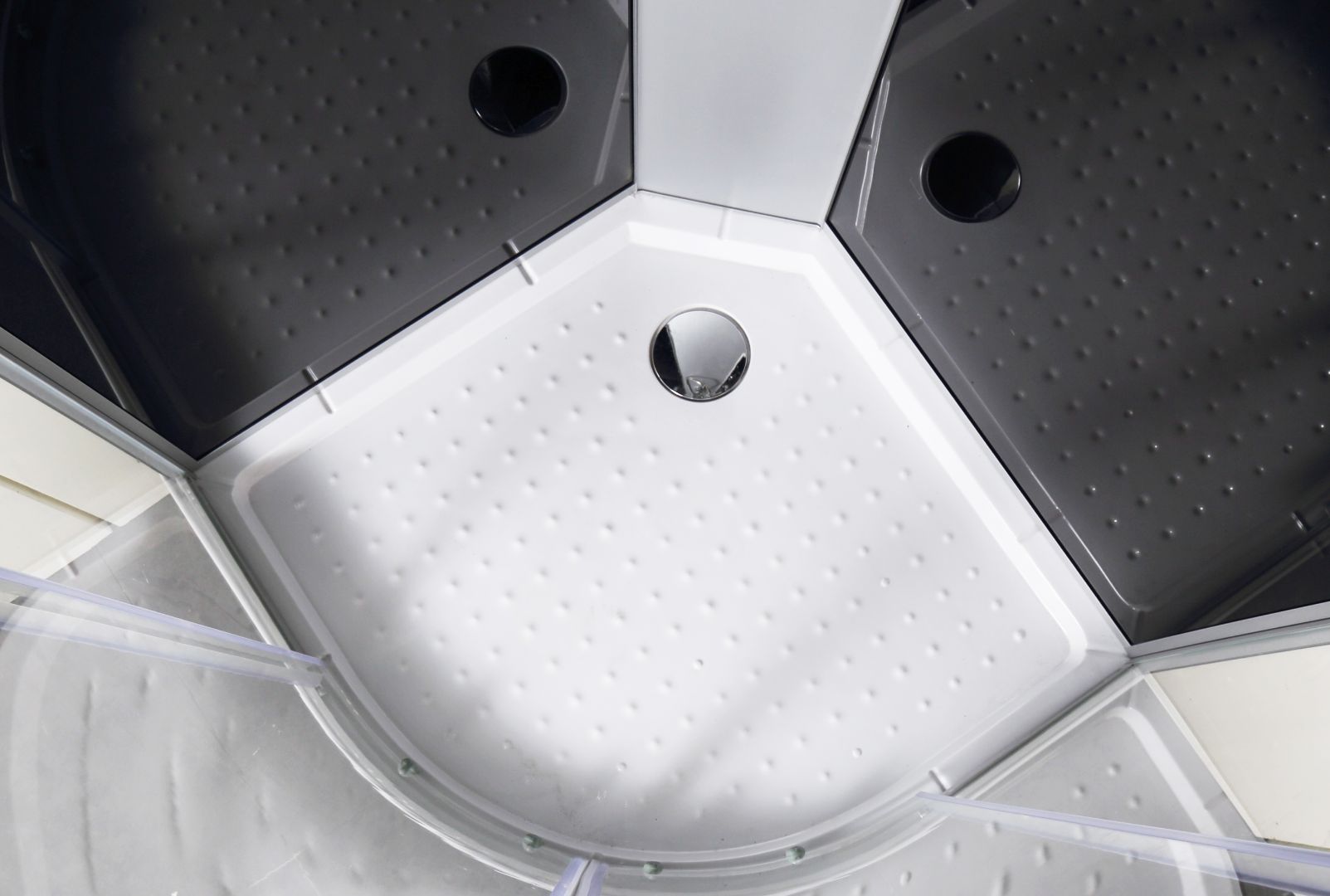 La cabina de ducha redonda RIO BLACK crea un ambiente moderno en tu baño gracias a su cristal trasero negro. Dispone de 2 puertas correderas de cristal de seguridad de 4 mm, ducha de mano y una práctica repisa de cristal. Como la cabina de ducha está completamente cerrada, toda el agua permanece dentro de la cabina. La cabina de ducha se puede instalar en cualquier habitación.