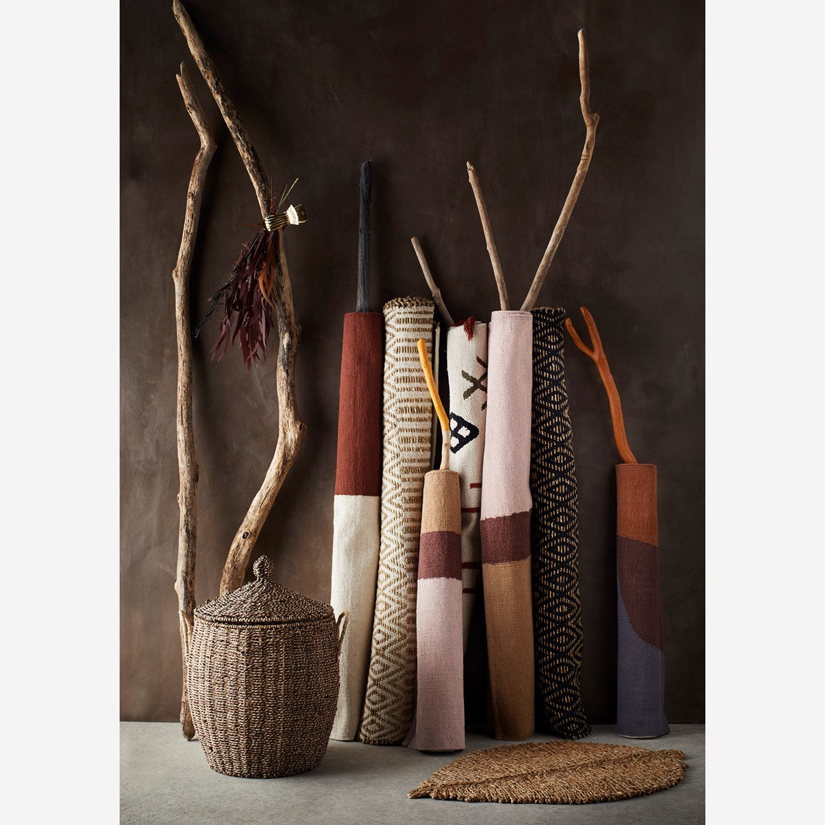 La inconfundible mezcla de estilos de Madam Stoltz también prevalece en esta alfombra. Se combinan la informalidad escandinava y el diseño de alfombras de la India, armonizando el encanto nostálgico y la sencillez. La alfombra con cuatro bonitas borlas en las esquinas tiene un diseño único y colorido en rojo, amarillo, negro y caqui. La alfombra Kilim aporta a tu hogar un aire hogareño.