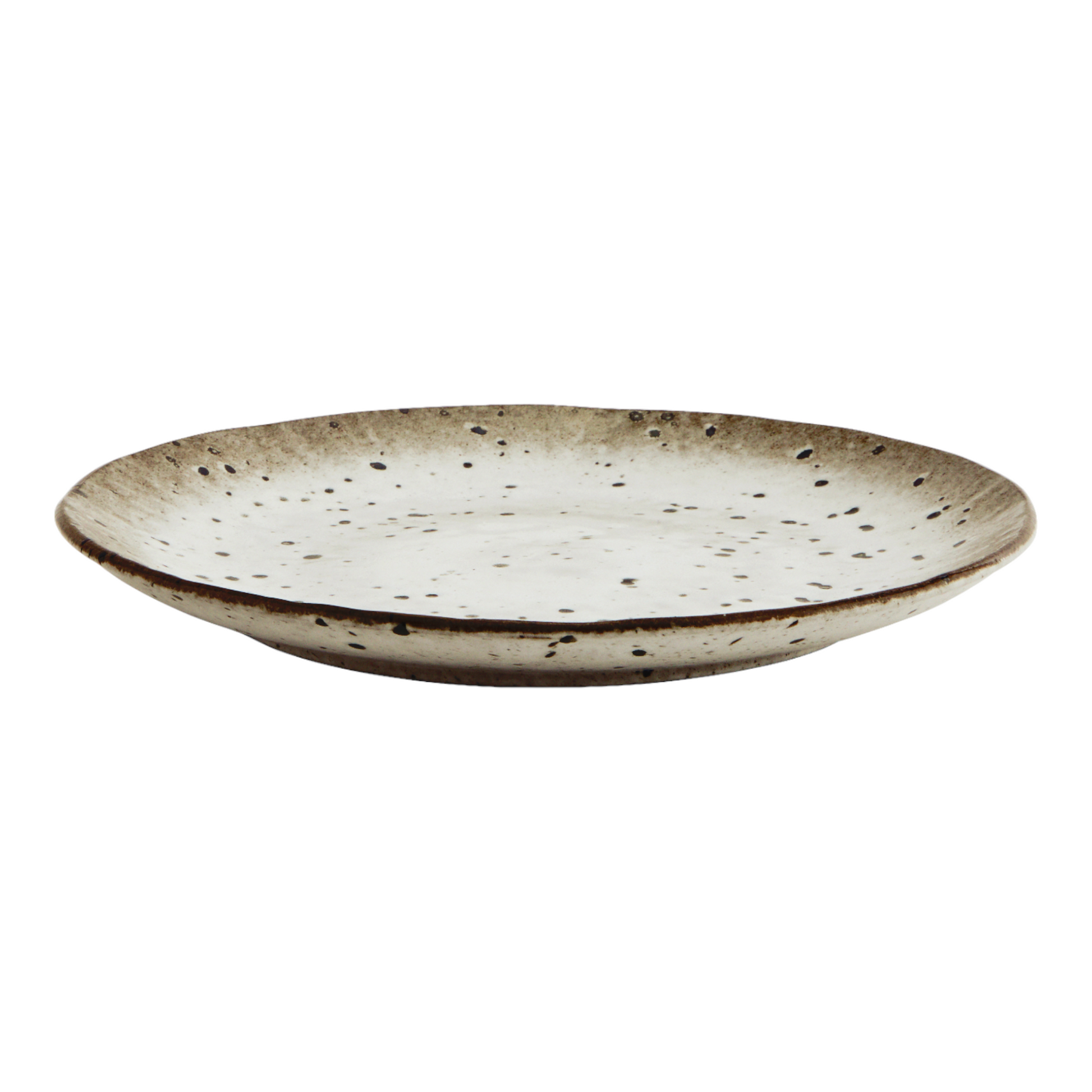 El aspecto natural de nuestros productos de gres los convierte en algo muy especial. Cada pieza tiene su apariencia única gracias a la estética natural y las pequeñas imperfecciones. Cada plato de desayuno es único por su aspecto rústico. Los platos están disponibles en beige y blanco natural, con toques de color creados por los llamativos bordes y puntos.