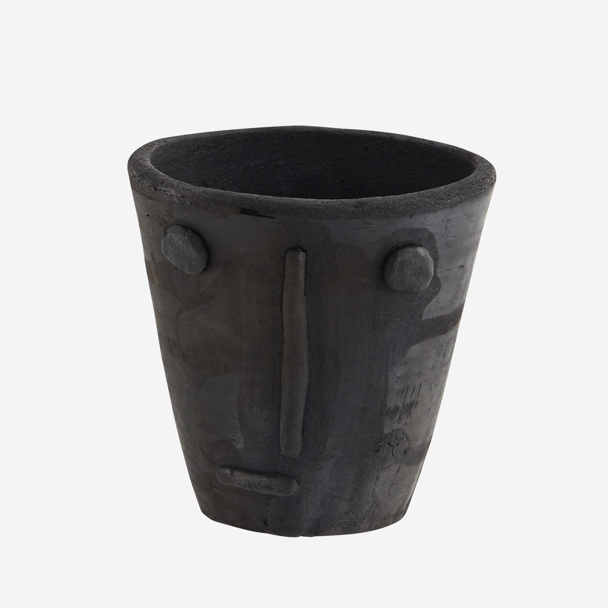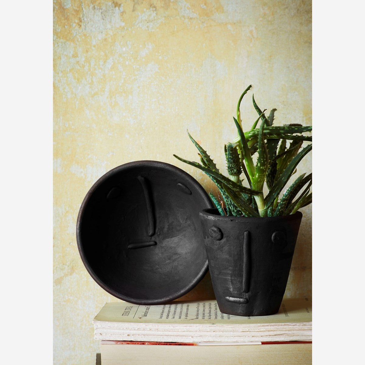 Esta maceta de arcilla negra hecha a mano es especialmente adecuada para plantas de interior pequeñas, pero también como objeto decorativo independiente. Aporta un poco de verde a la decoración de tu hogar y combina diferentes macetas de Madam Stoltz. La cara resaltada hace que esta maceta de arcilla sea llamativa y única a pesar de su sencilla elegancia.