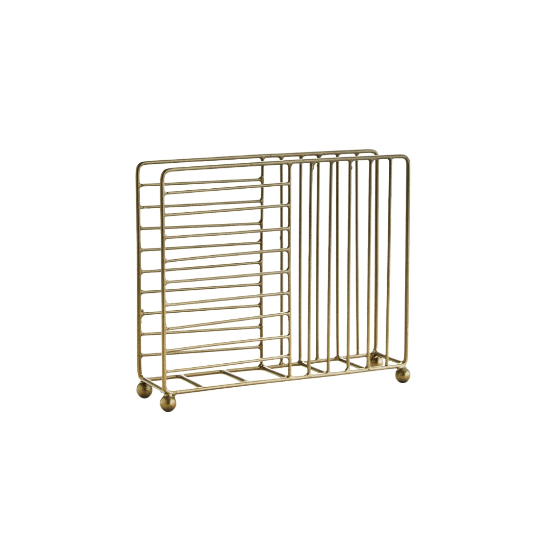 Este servilletero de metal sirve para guardar servilletas, cartas o postales y se puede utilizar directamente en la mesa. El diseño extravagante con la combinación de barras transversales y longitudinales resulta muy elegante. A pesar de su aspecto inusual, el servilletero Magazine tiene un estilo elegante y minimalista.
