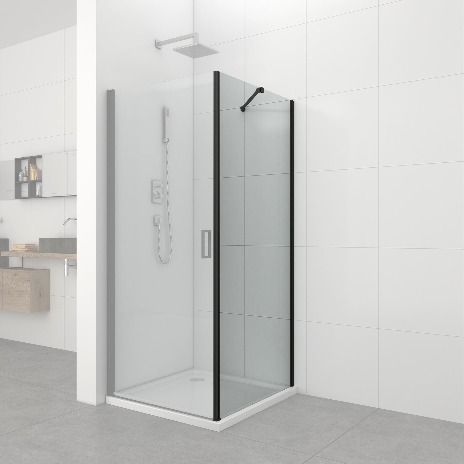 El elemento fijo de cristal Elite Black se adapta a las puertas correderas y pivotantes de la gama Elite Black. Con el cristal fijo puedes transformar la puerta corredera y pivotante en una ducha de esquina. Con los perfiles de aluminio negros, el elemento de cristal fijo tiene un aspecto muy elegante. El cristal fijo está disponible en dos tamaños diferentes y se puede combinar con cualquier tamaño de puerta.