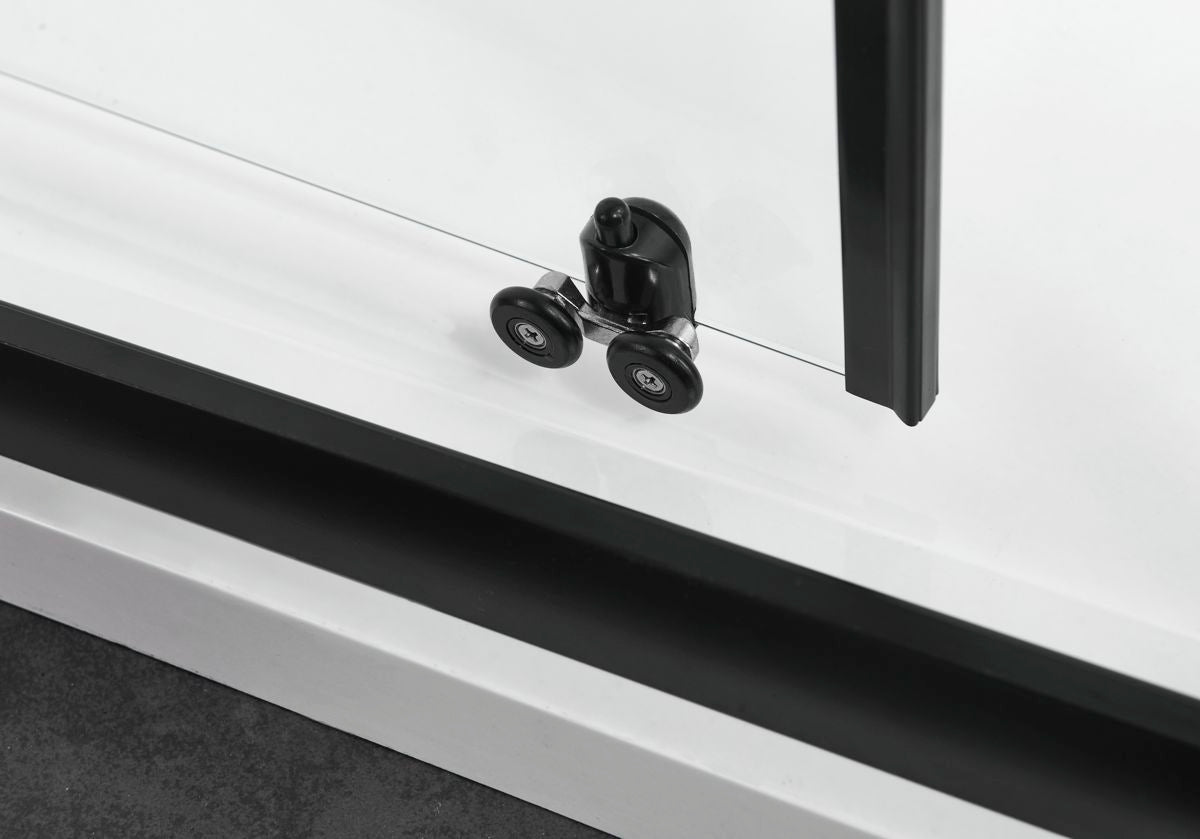 La puerta corredera Elite Black se puede utilizar en dos versiones diferentes. La primera variante es una solución de nicho. Con la solución de nicho, sólo necesita pedir la puerta y el perfil de nicho (por separado). La segunda opción sería colocar la puerta corredera en una esquina y comprar un cristal fijo (aparte). La puerta corredera se puede convertir en una cabina de ducha de esquina. El cristal fijo está disponible en dos tamaños diferentes, para que puedas decidir tú mismo el tamaño de la ducha.
