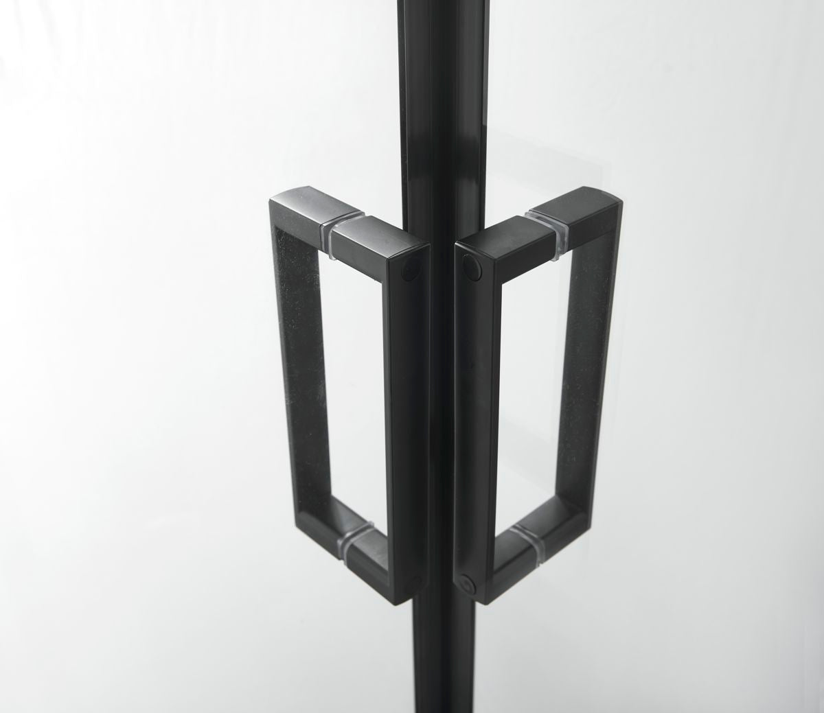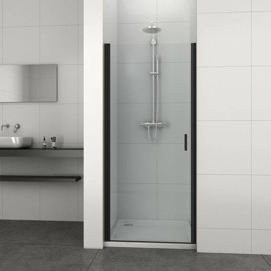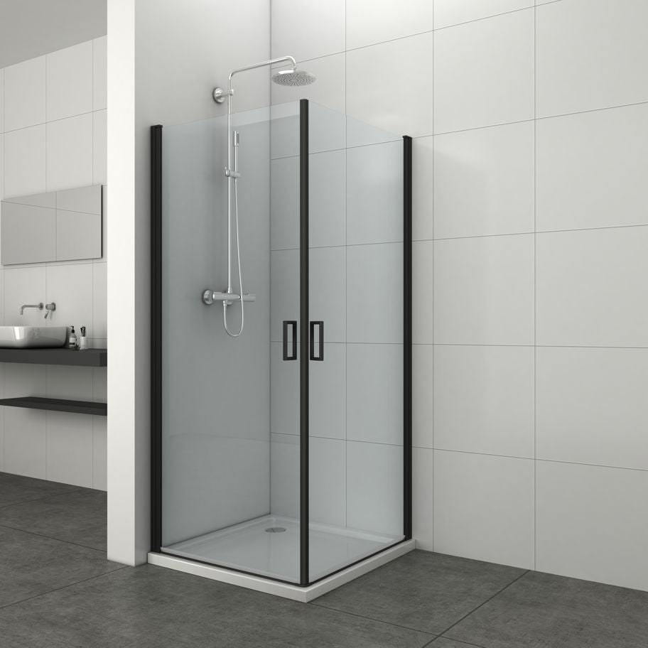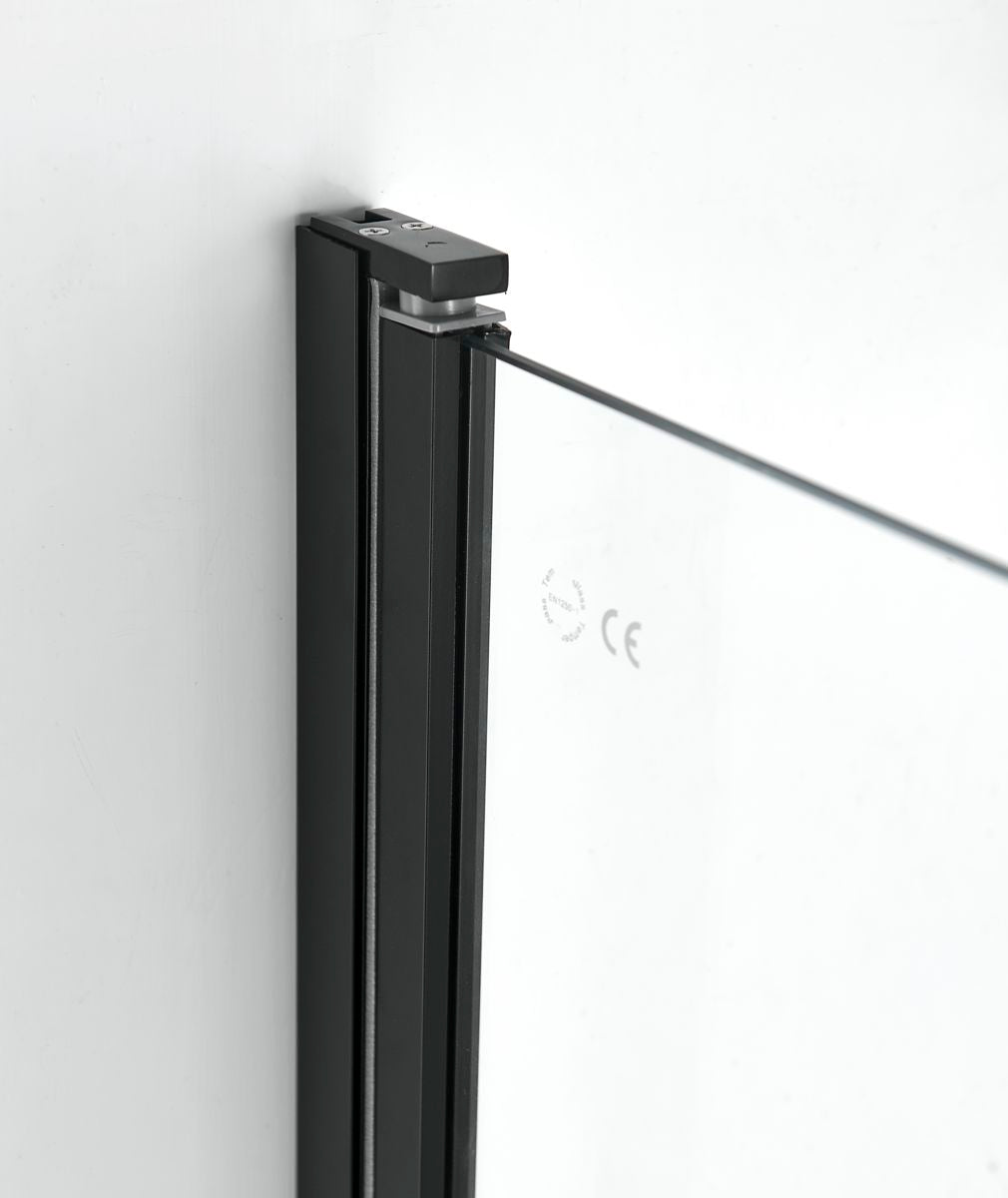La puerta batiente Elite Black se puede utilizar de diversas formas. Está disponible en dos tamaños diferentes y se puede utilizar como solución de nicho (con perfil de nicho) o como ducha de esquina (con elemento de cristal fijo). También existe la posibilidad de comprar la puerta batiente dos veces y así crear una ducha de esquina.