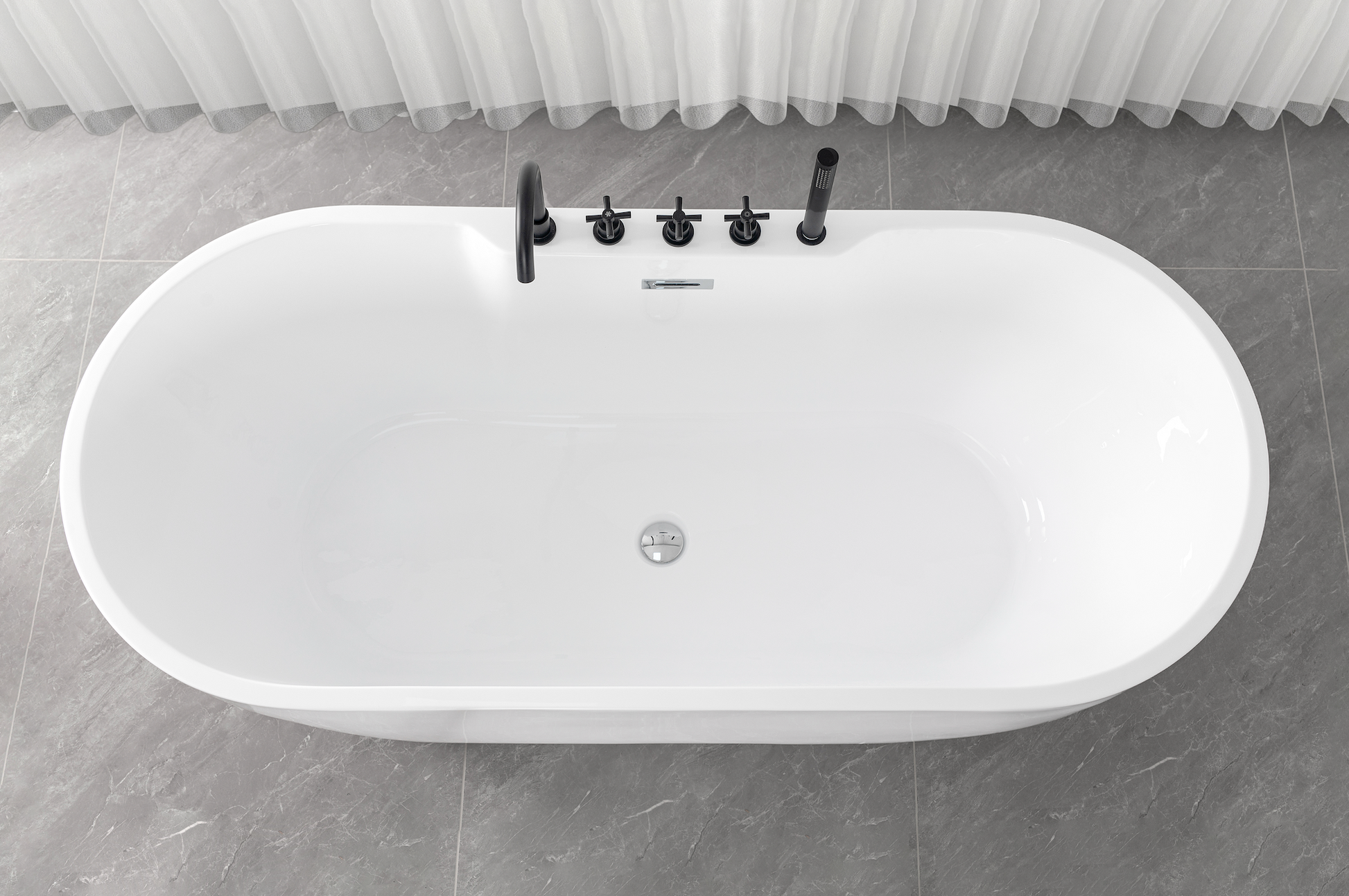 Experimente una relajación de lujo con nuestra bañera exenta ARUBA. Sus generosas dimensiones de 170 x 75 x 58 cm y su elegante superficie acrílica blanca le ofrecen el espacio perfecto para relajarse. Con una capacidad de 252 litros y una robusta construcción de paneles acrílicos de 4 mm, reforzados con seis capas de fibra de vidrio y resina, esta bañera no solo es estéticamente agradable, sino también duradera.