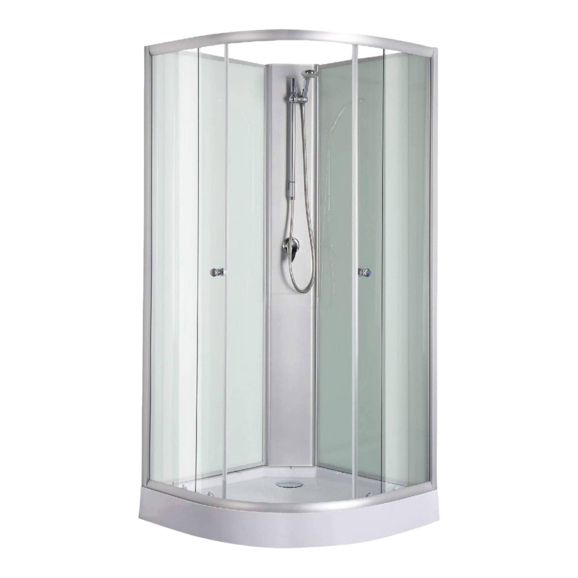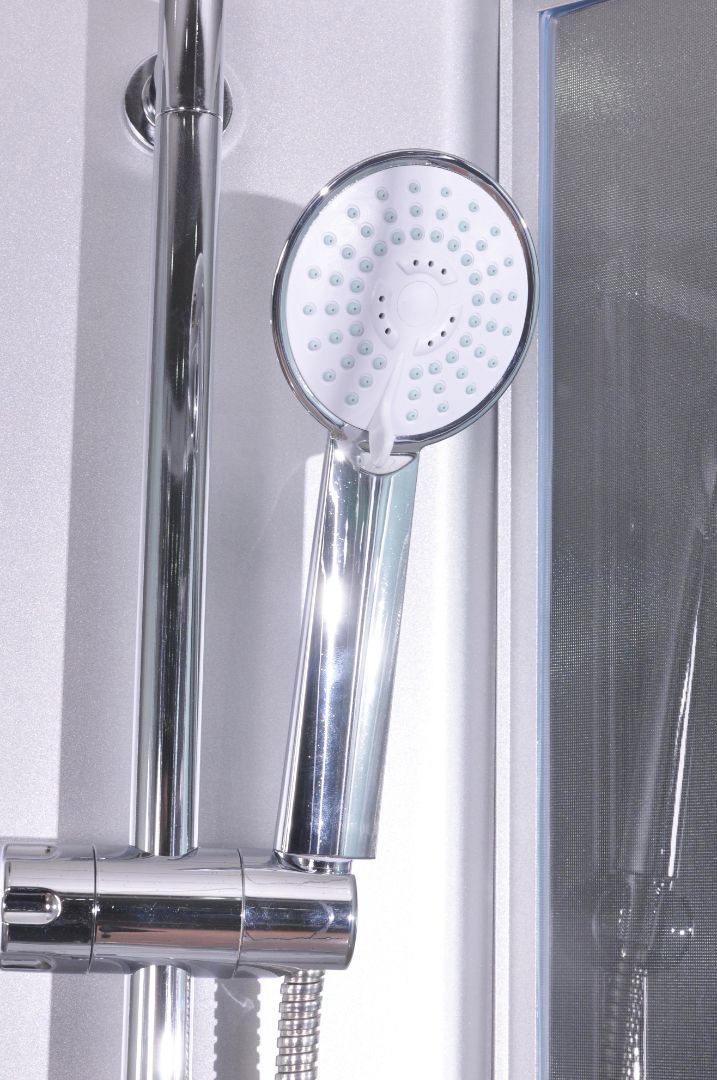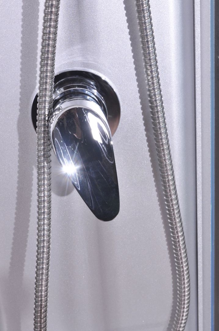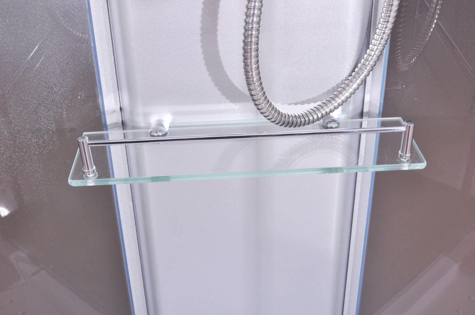 La cabina de ducha redonda RIO crea un ambiente moderno en su baño. Dispone de 2 puertas correderas de cristal de seguridad de 4 mm, ducha de mano y una práctica repisa de cristal. Como la cabina de ducha está completamente cerrada, toda el agua permanece dentro de la cabina. La cabina de ducha se puede instalar en cualquier habitación.