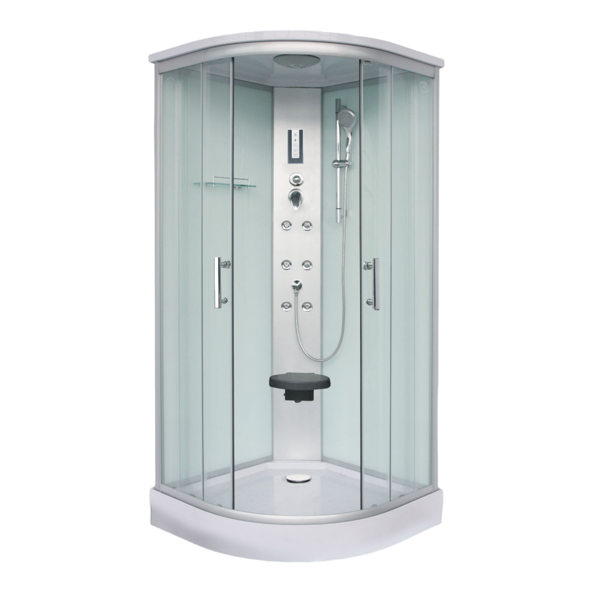 La mampara de ducha completa SCALA impresiona sobre todo por su aspecto elegante. La alta calidad de los materiales garantiza una larga vida útil. Una característica especial de esta ducha es la radio incorporada. La cabina cuenta con ducha de mano y de cabezal y 6 chorros de masaje. Para mayor comodidad, la cabina cuenta con un estante de vidrio y un asiento plegable. También encontrará iluminación en la ducha.