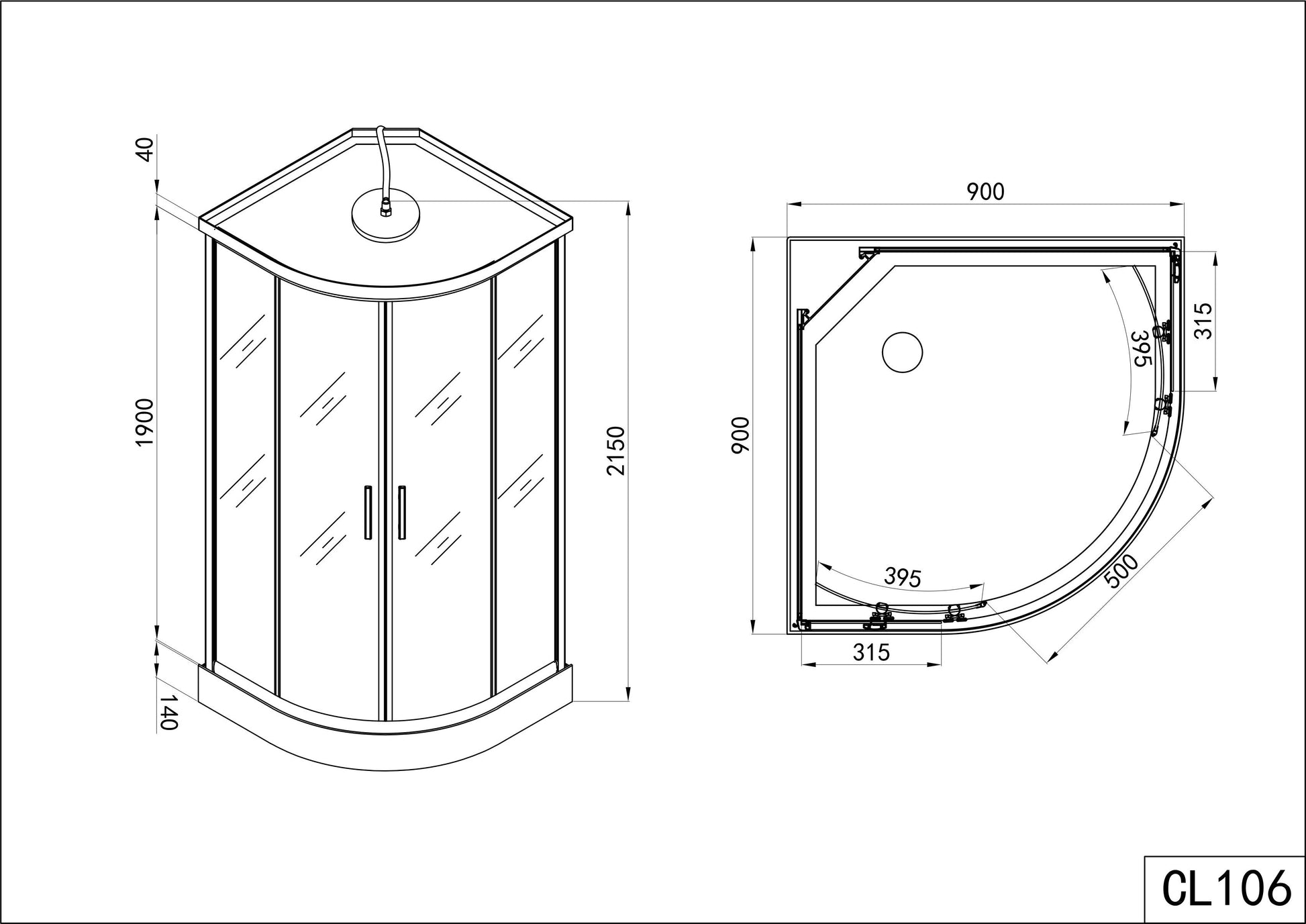 - Puerta de vidrio de seguridad ESG de 5 mm y parte de vidrio fija