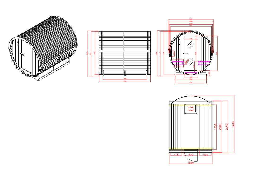 • Abmessungen außen: 194,2 × 244,9 × 194,9 cm