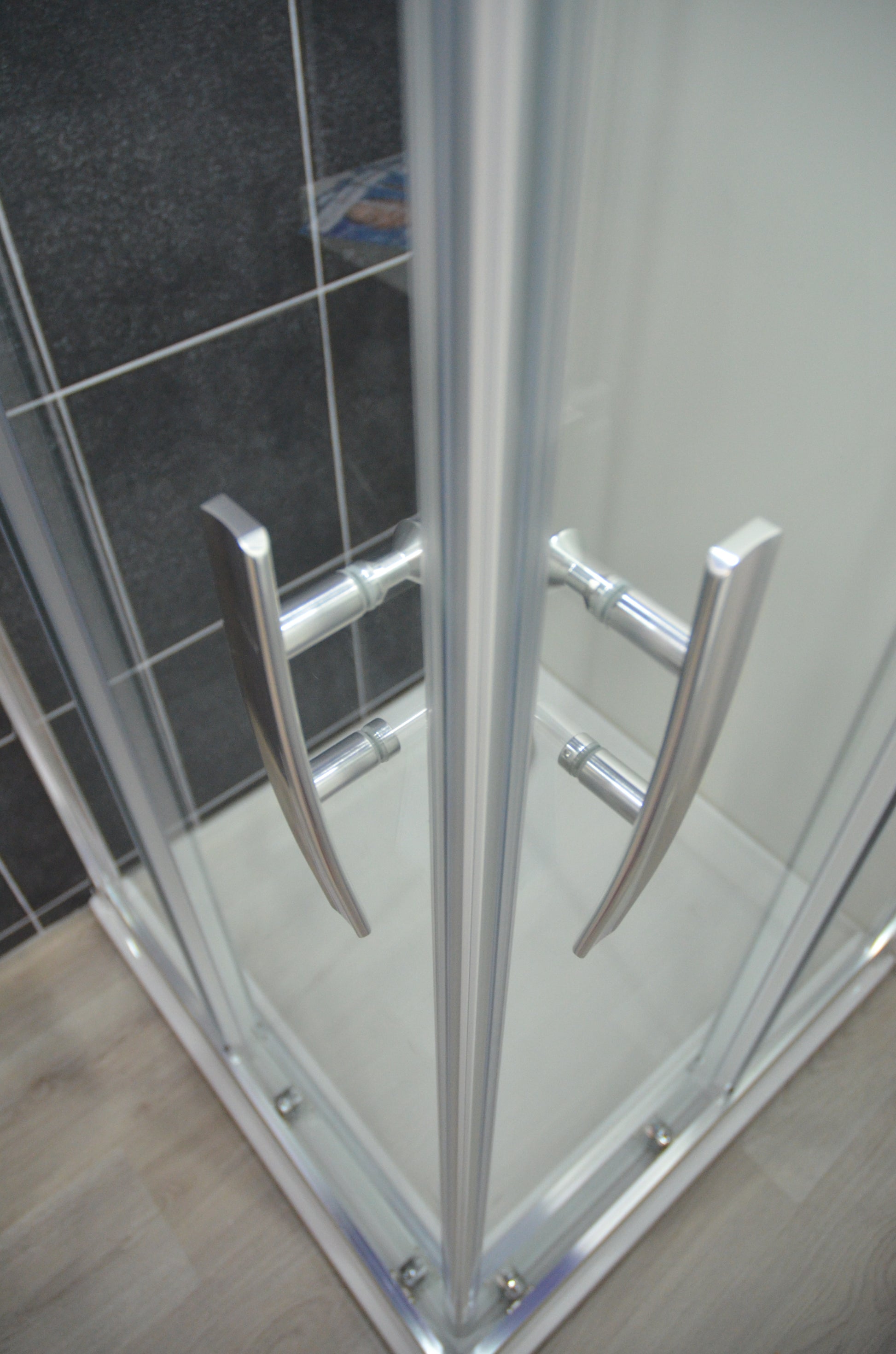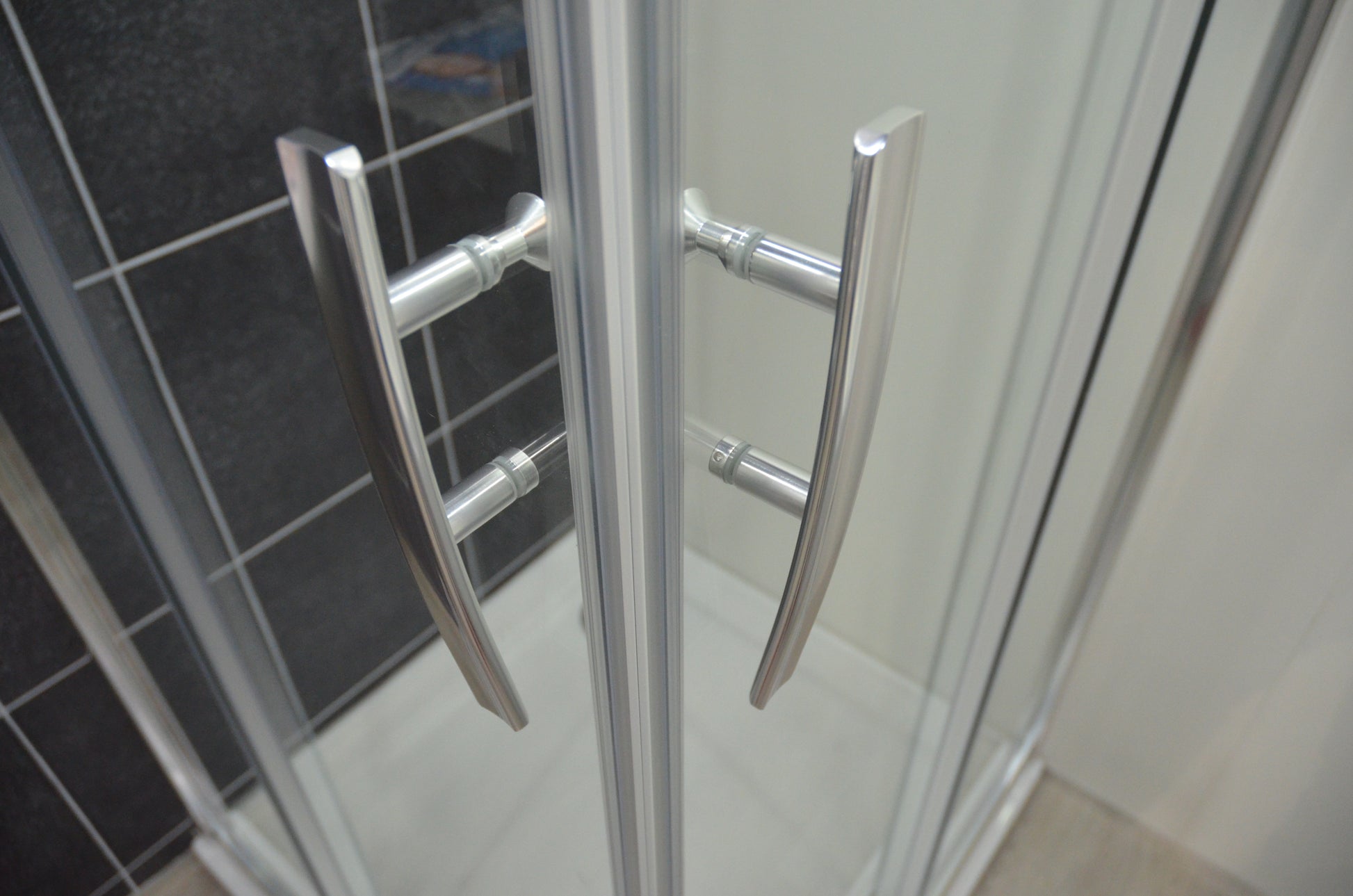La mampara de ducha esquinera Pro-Line se puede personalizar según sus necesidades. Gracias a la posibilidad de combinar cualquier tamaño de puerta, puede elegir libremente las dimensiones finales de su mampara.