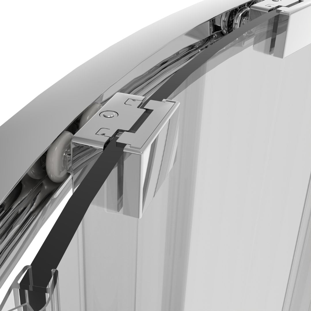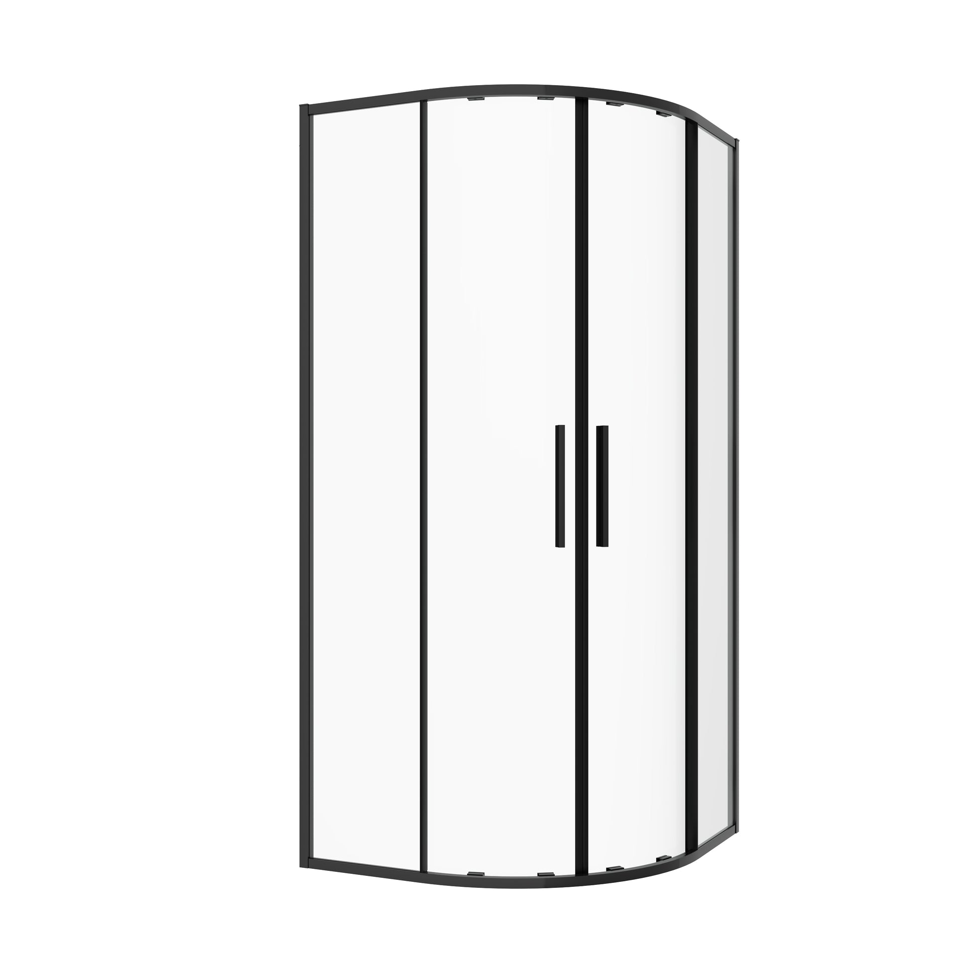 La mampara de ducha redonda de Sanotechnik está completamente equipada con cristal transparente, y los rieles y tiradores tienen un moderno acabado negro. Disponible en tres tamaños diferentes, se adapta a cualquier baño. Sus dos puertas correderas permiten un acceso práctico, fácil y cómodo.
