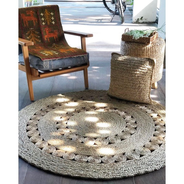 Con su forma redonda, la alfombra Málaga atraerá todas las miradas en cualquier habitación. A pesar de su apariencia sencilla, es elegante y con estilo al mismo tiempo gracias a la combinación de círculos pequeños y grandes. El material de algas marinas confiere a la alfombra un estilo atemporal que se adapta a cualquier habitación.