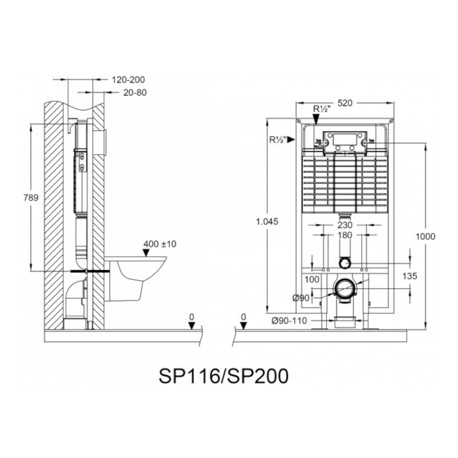 - Para instalación en cavidad, función de doble descarga (3/6 litros) con marco base