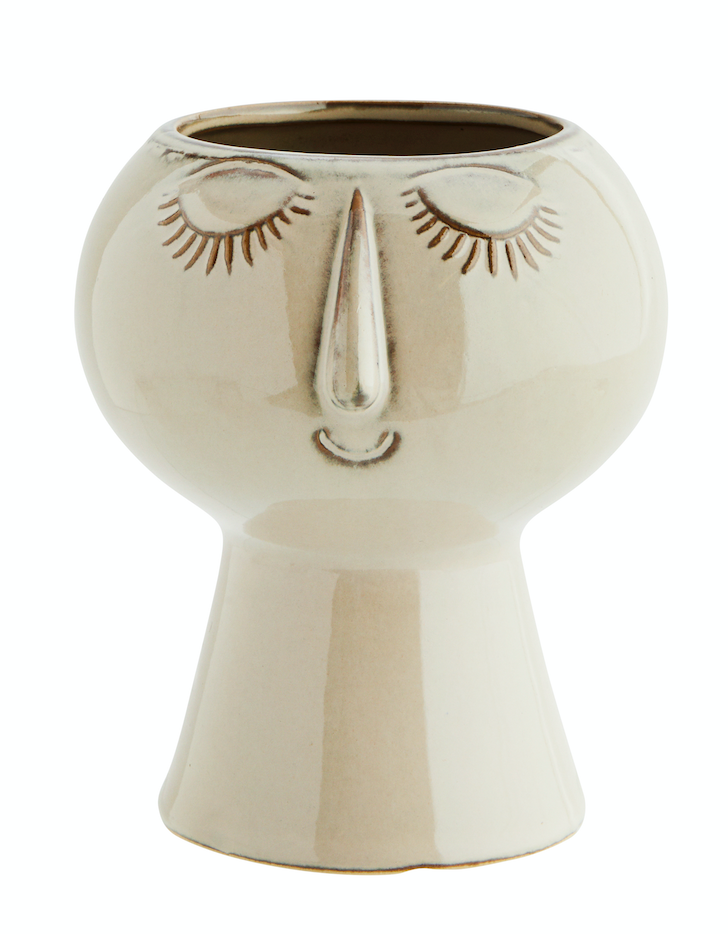 Esta maceta forma parte de una gama de la colección Madam Stoltz, todas las cuales presentan un estampado de caras. La maceta con relieve frontal resaltará especialmente sus plantas. Todas las piezas de esta colección única destacan por su diseño llamativo y, sin embargo, no son llamativas, sino más bien elegantes. La maceta está hecha de gres rústico y queda muy natural.