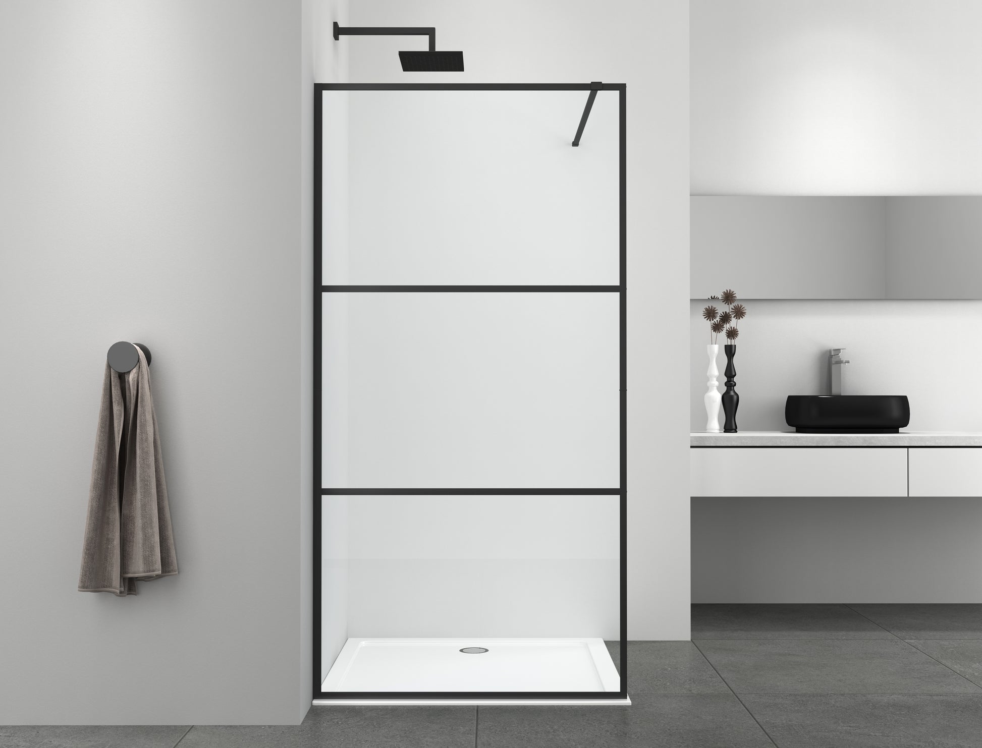Cabina de ducha con estructura negra de 3 piezas en diferentes tamaños
