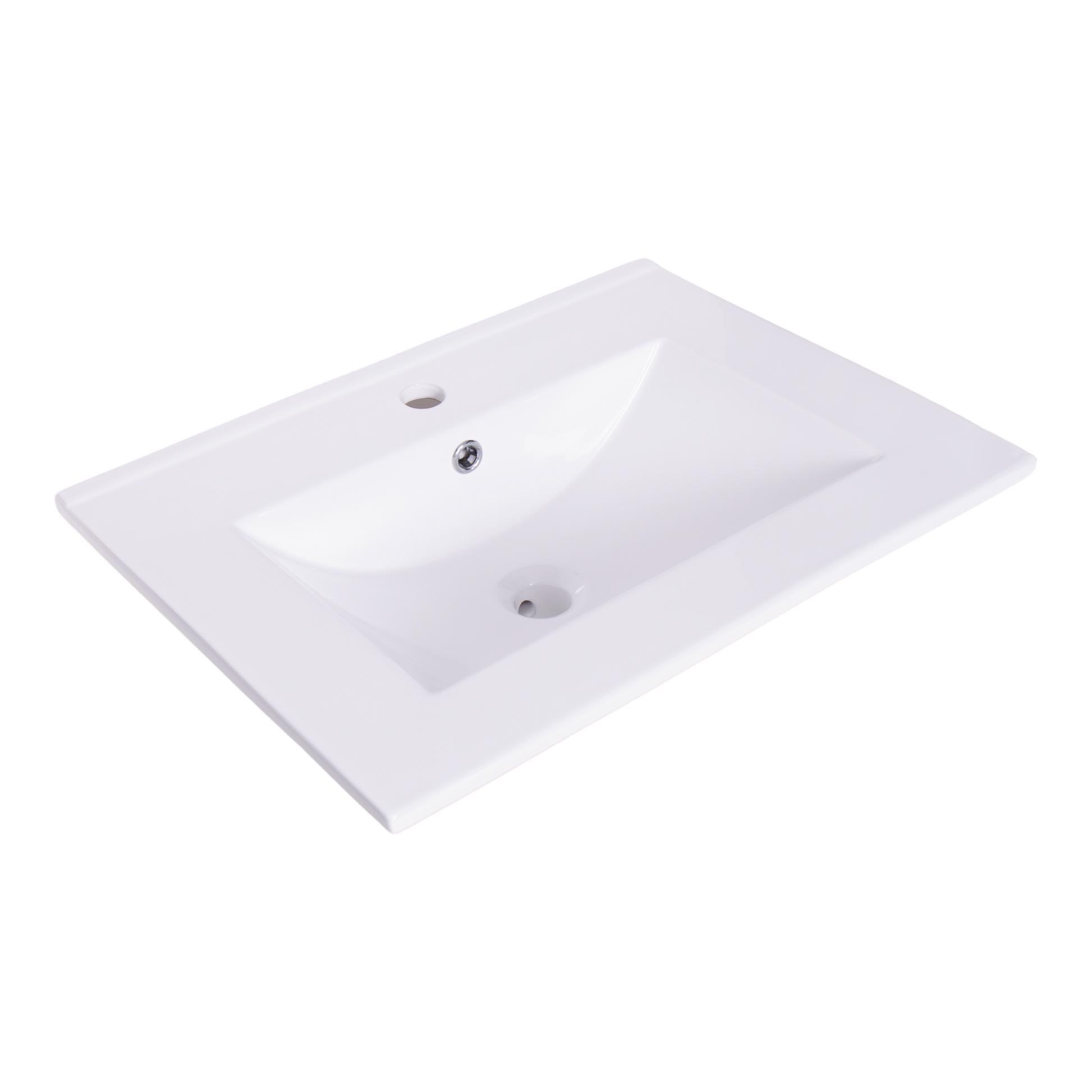 El fregadero es de cerámica. El lavabo tiene forma semicircular para que el agua siempre fluya fácilmente hacia el desagüe. También hay un desbordamiento en la piscina.