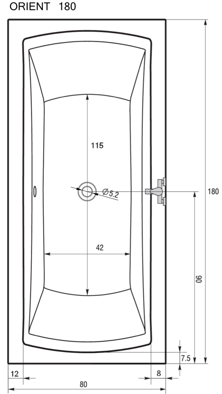 - Abmessungen Badewanne: 180cm x 80cm x 48cm