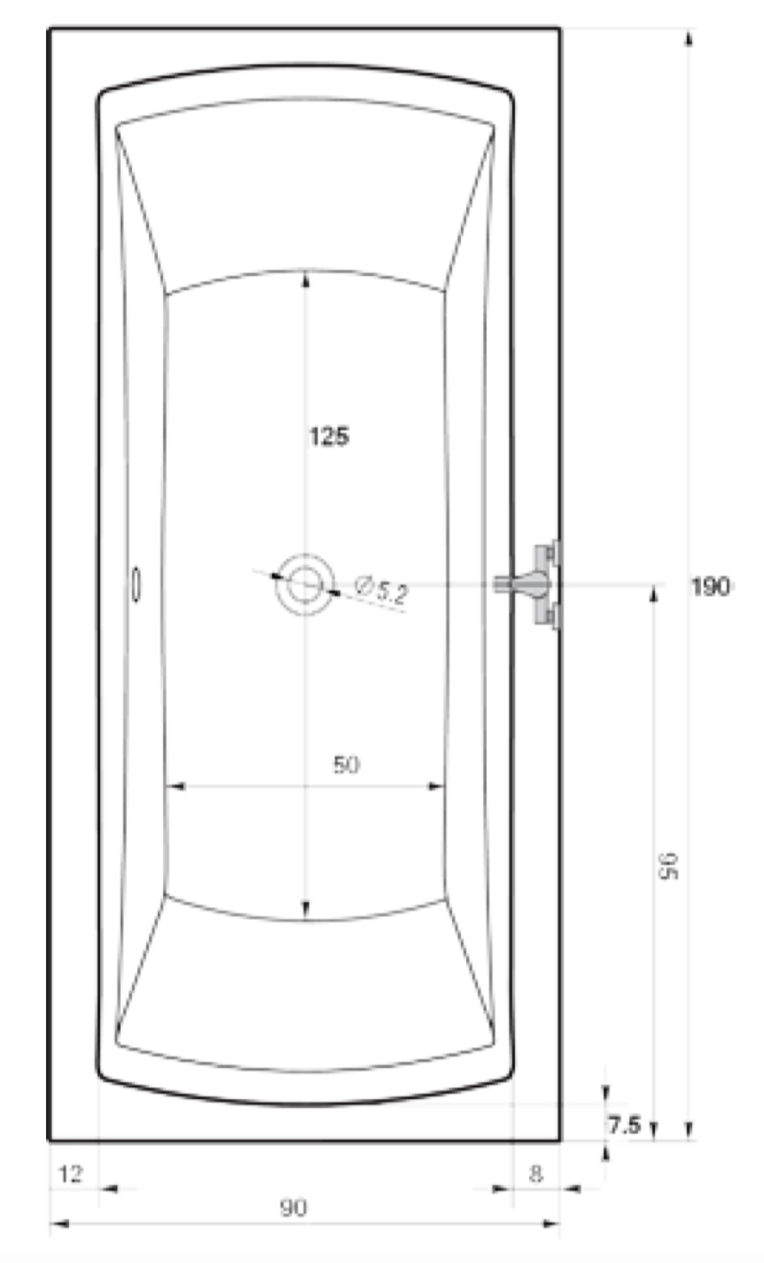 - Abmessungen Badewanne: 190cm x 90cm x 48cm