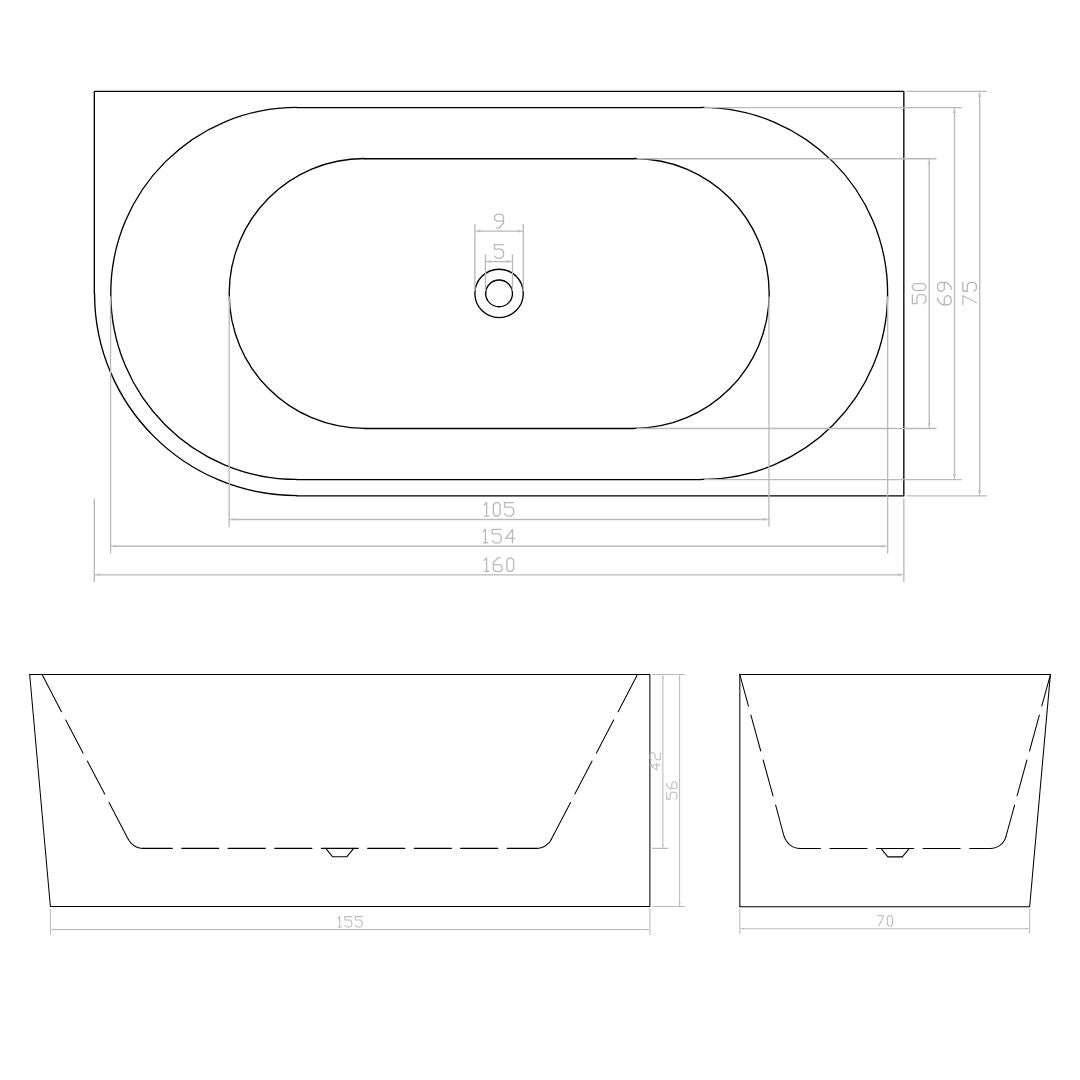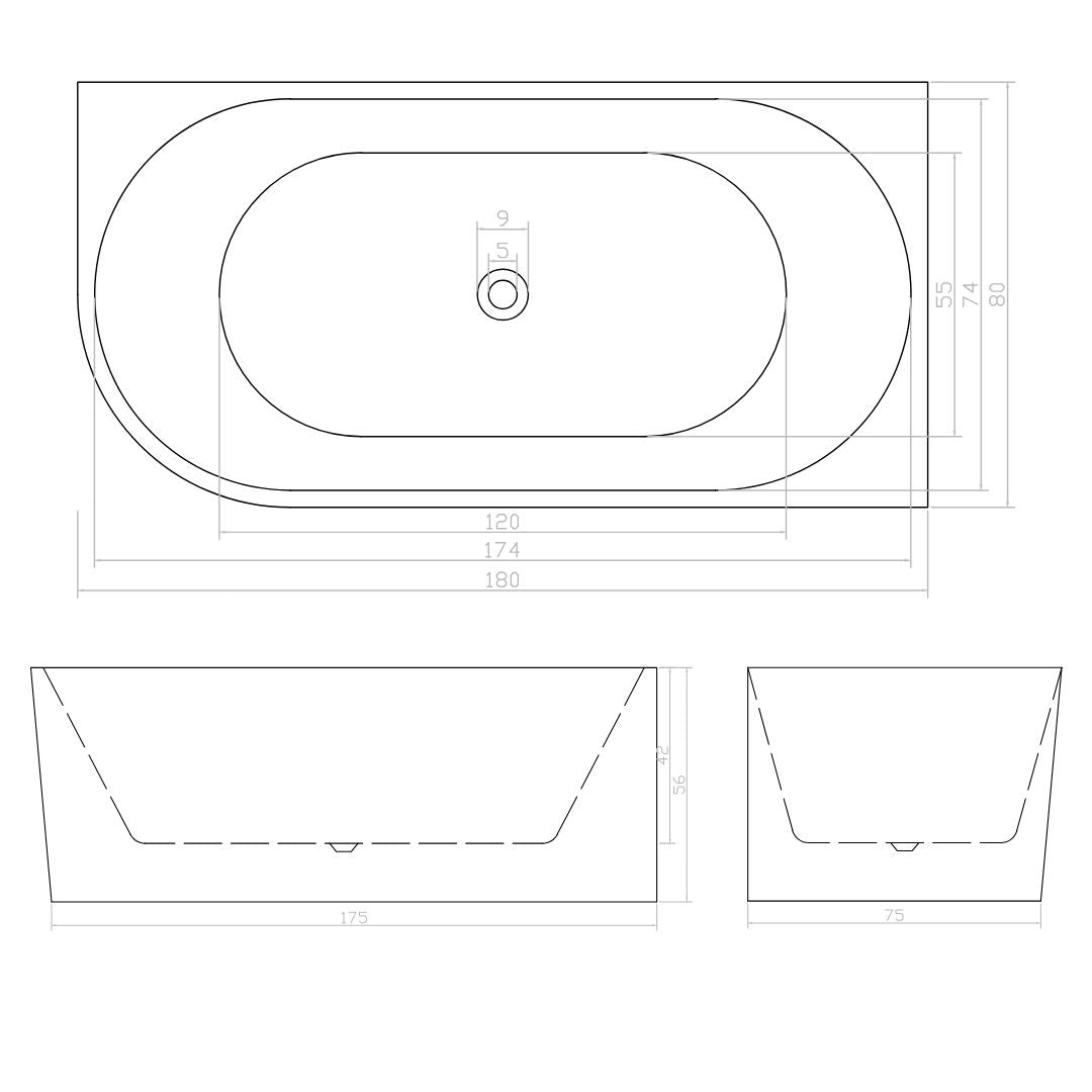 Eckbadewanne Porto 170x75x56 cm