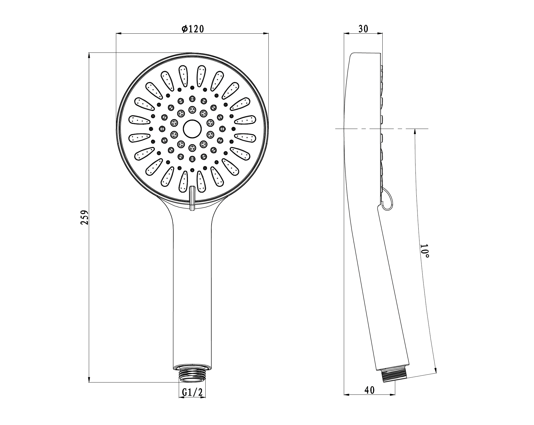 Handbrause in chrom 12 cm mit 3 Funktionen