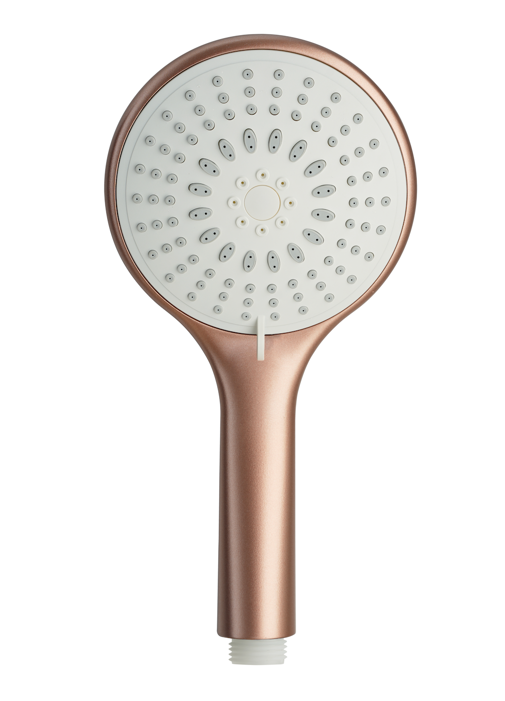 Diese luxuriöse Handbrause in edlem Roségold bietet mit fünf verschiedenen Strahlfunktionen ein personalisiertes Duscherlebnis. Das hochwertige Finish verleiht dem Badezimmer eine elegante und moderne Ausstrahlung, während die benutzerfreundliche Bedienung Komfort und Flexibilität garantiert. Ideal für alle, die Design und Funktionalität stilvoll vereinen möchten.