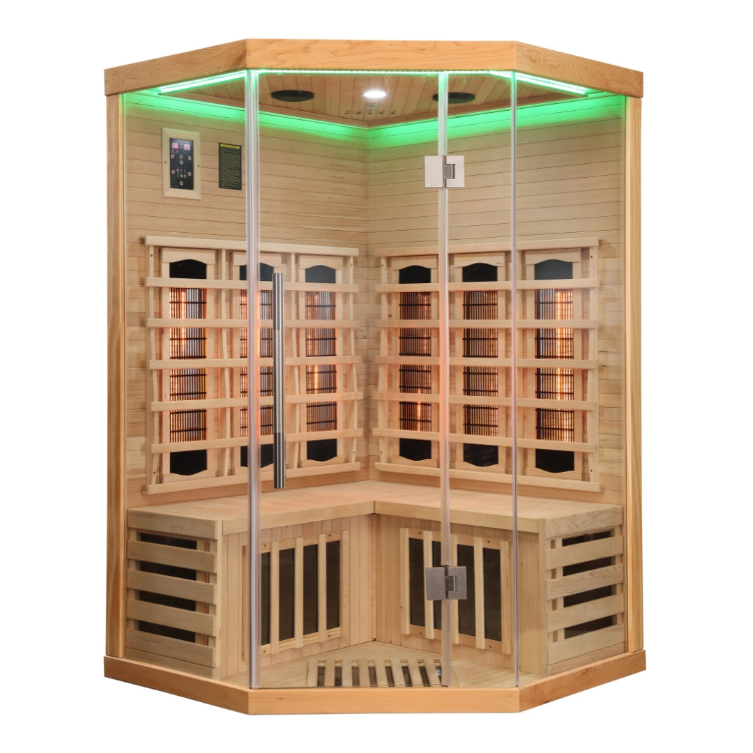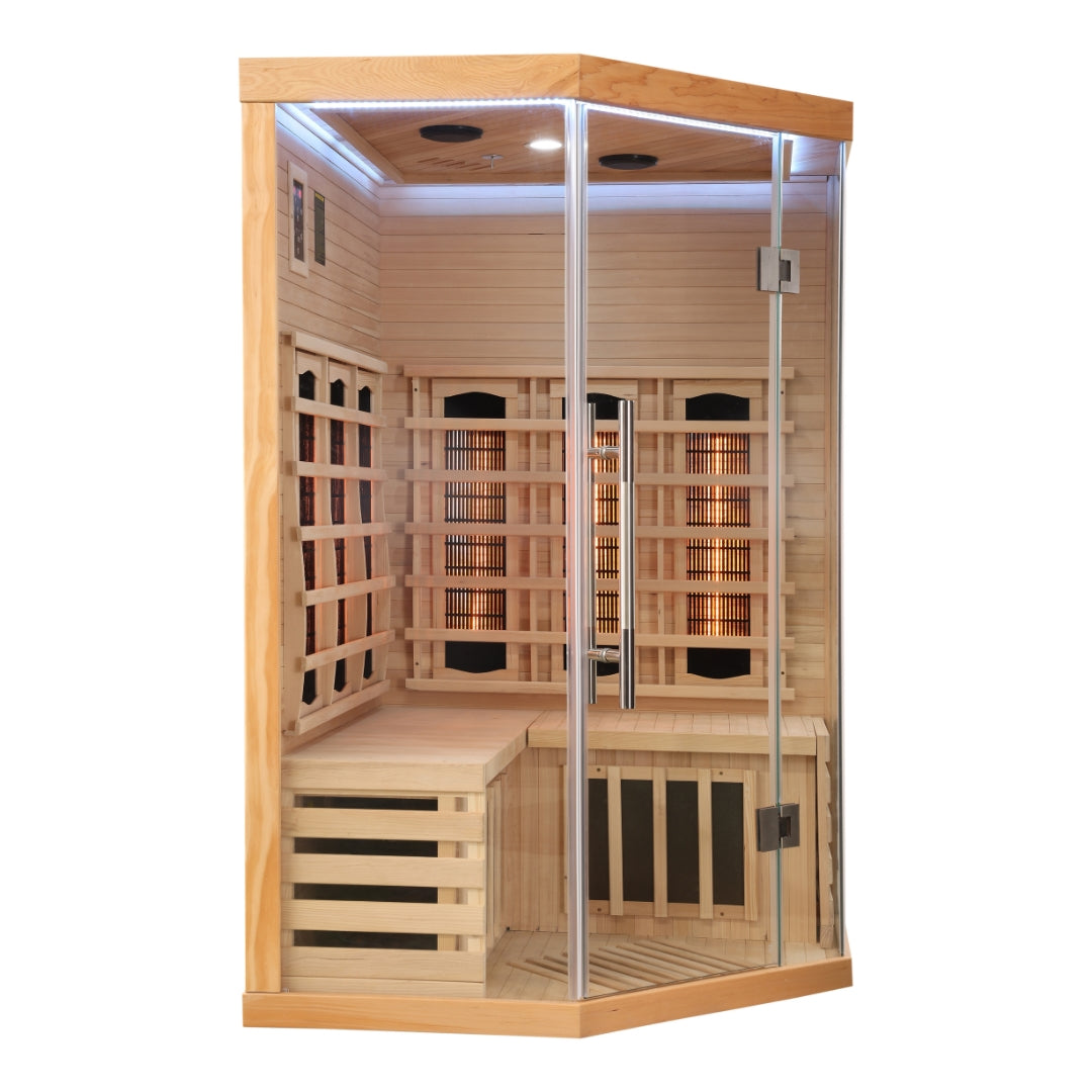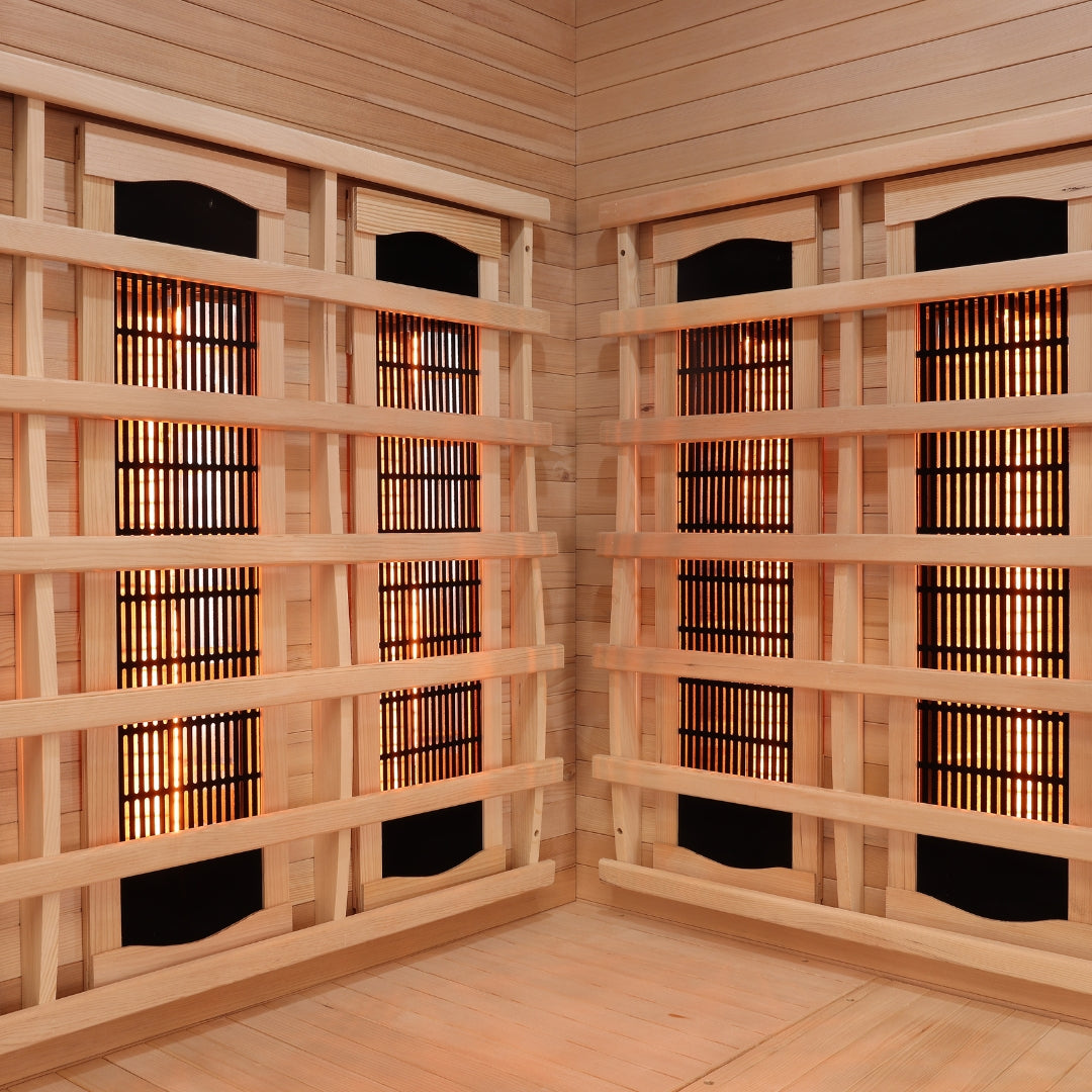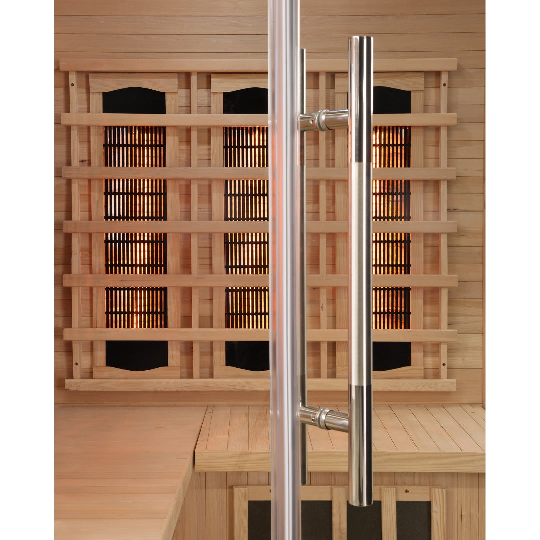 Die großflächige Heizplatte sorgt für eine gleichmäßige Wärmeverteilung und ein angenehmes Raumklima. Ergänzt wird das Wellness-Erlebnis durch eine integrierte Farblichtherapie, die je nach Lichtfarbe beruhigend, ausgleichend oder aktivierend wirkt.