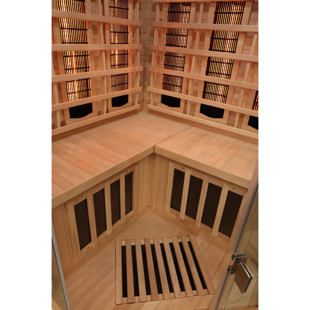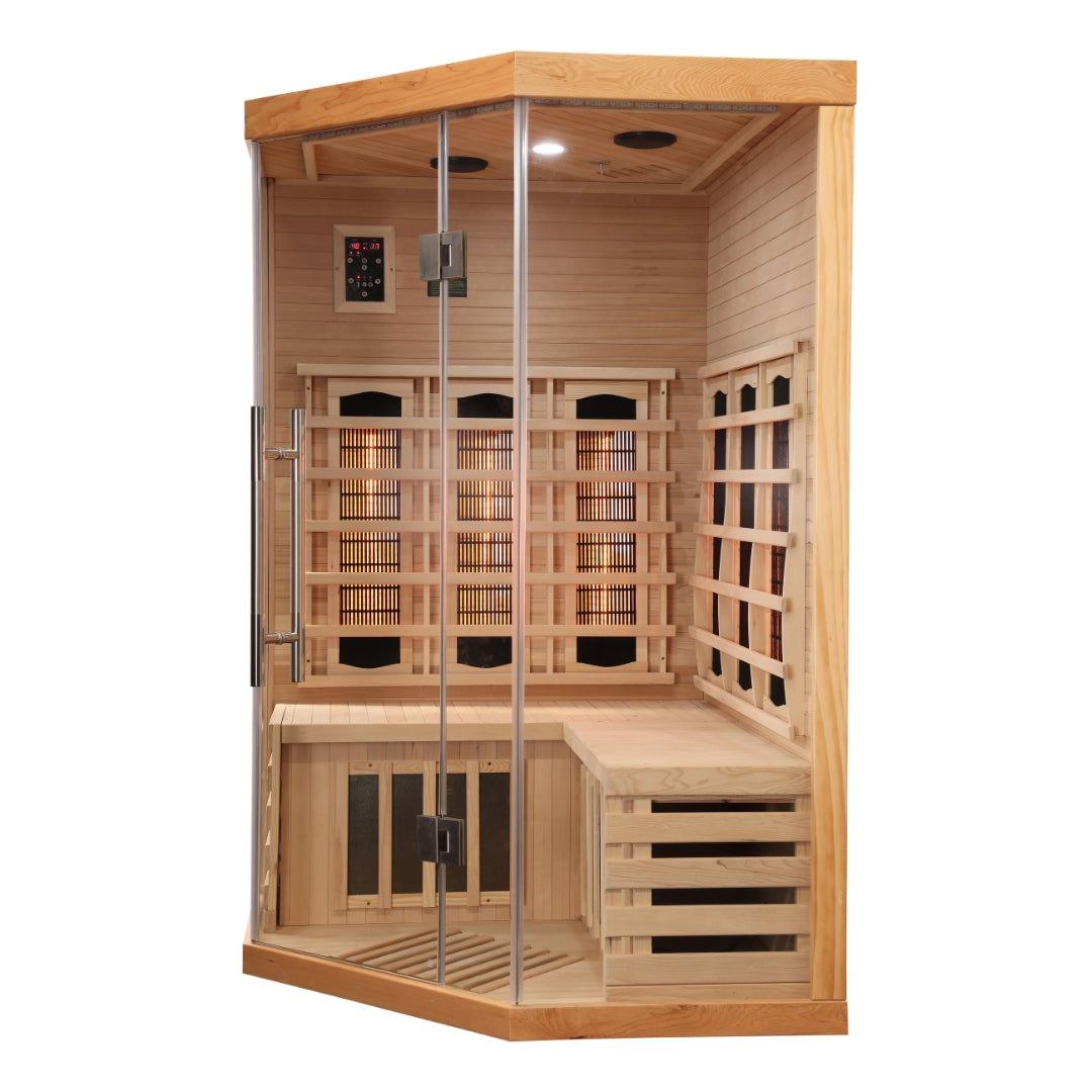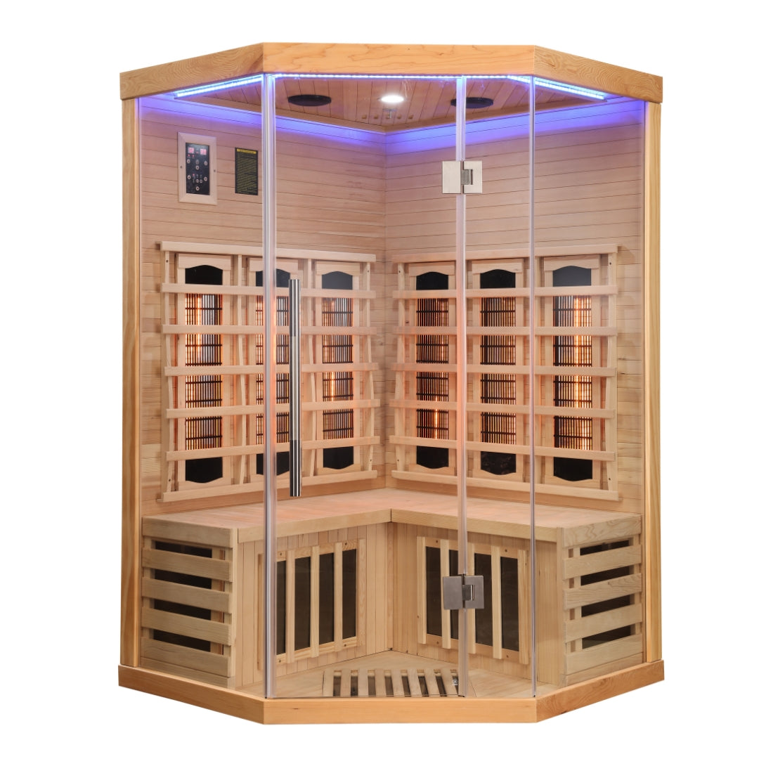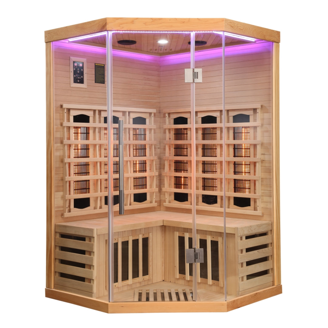 Die großflächige Heizplatte sorgt für eine gleichmäßige Wärmeverteilung und ein angenehmes Raumklima. Ergänzt wird das Wellness-Erlebnis durch eine integrierte Farblichtherapie, die je nach Lichtfarbe beruhigend, ausgleichend oder aktivierend wirkt.