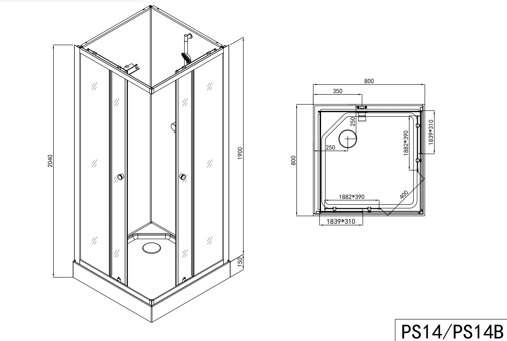 - PS15S: 90x90x203 cm