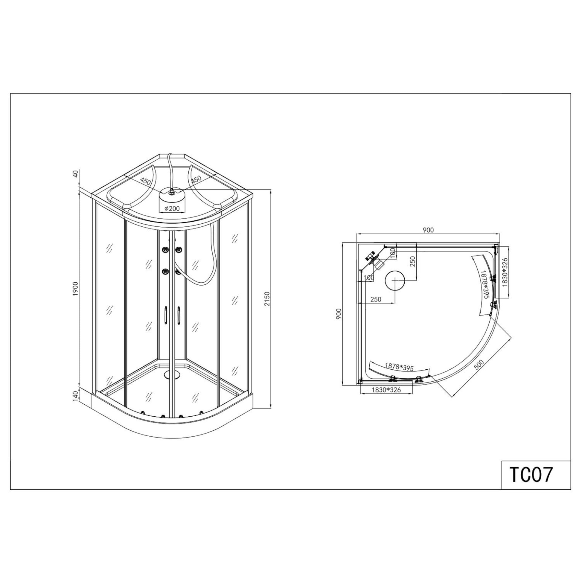 Komplettduschkabine RELAX BLACK 90x90x215 cm