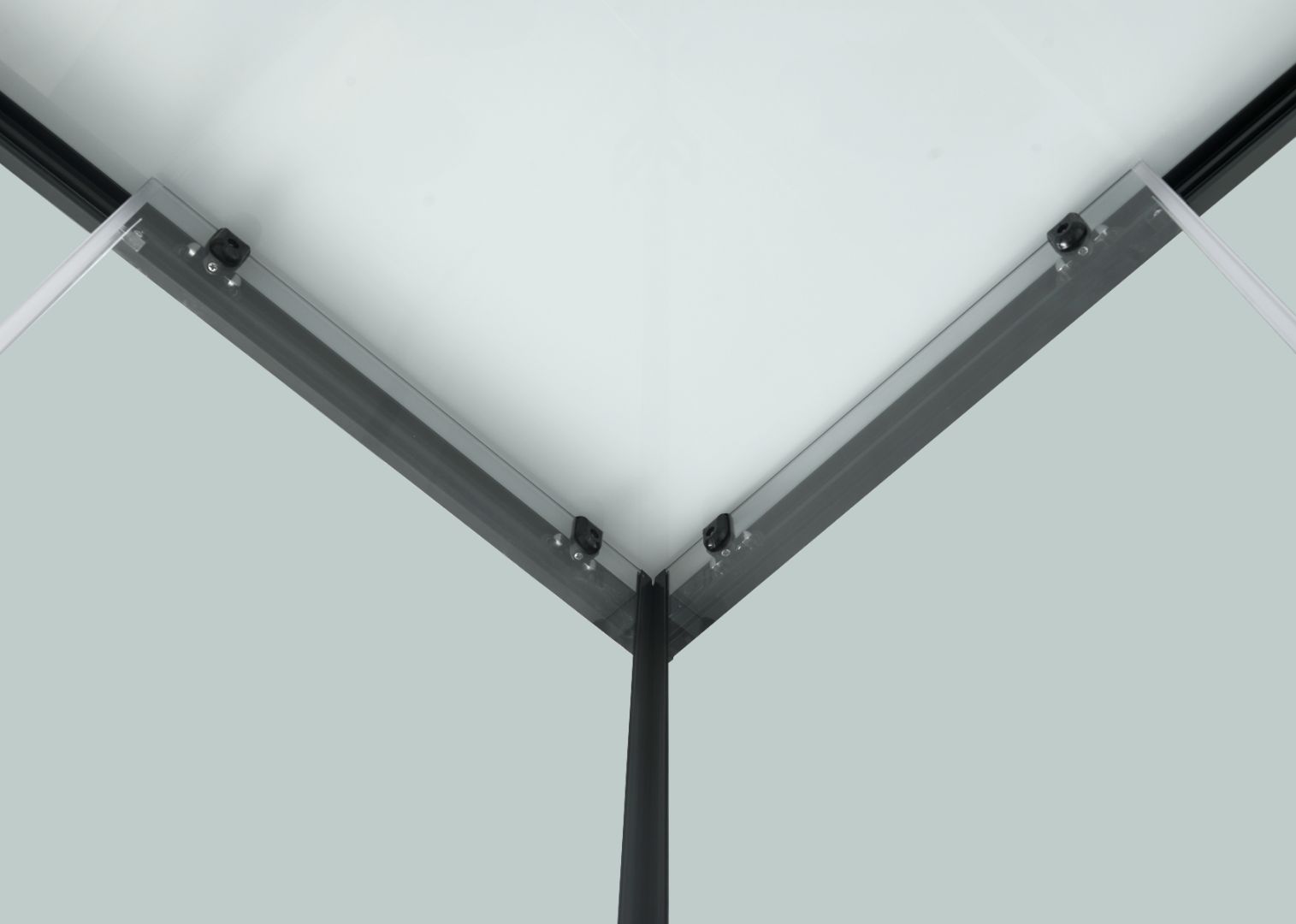 Alle Paneele sind aus Glas, einschließlich des Daches. Für eine einfache Handhabung befindet sich in der Kabine auch eine Glasablage.