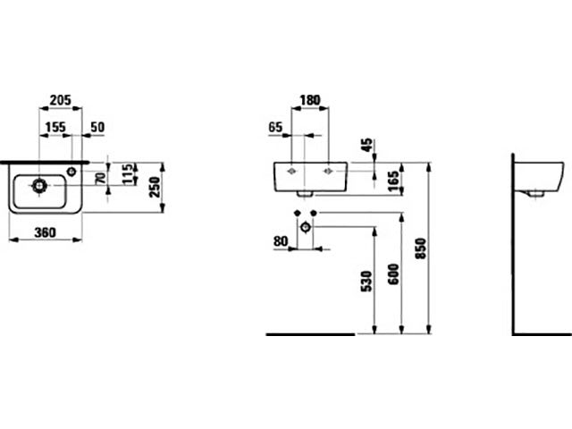 LAUFEN Pro A Handwaschbecken 36 cm mit Überlauf und Hahnloch rechts