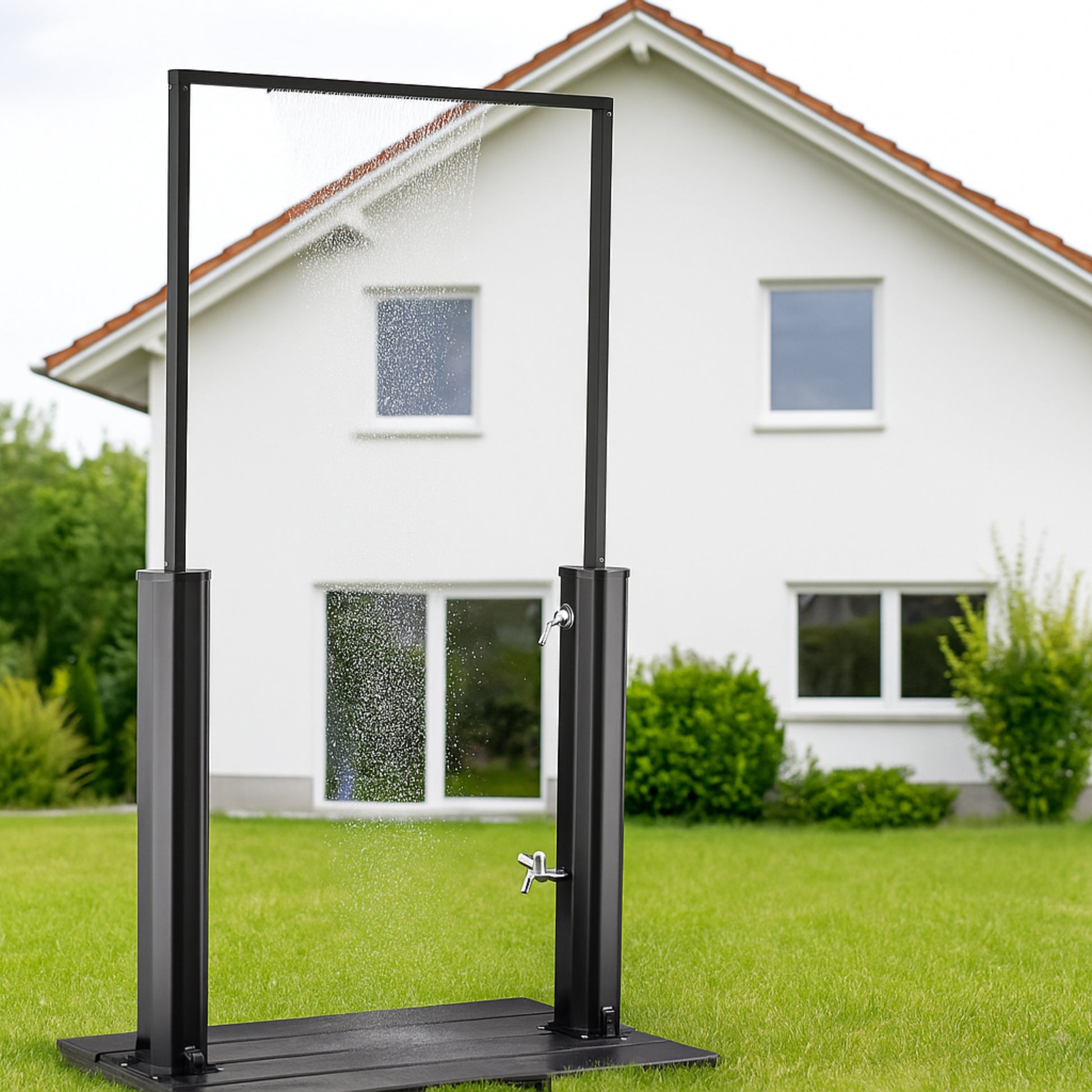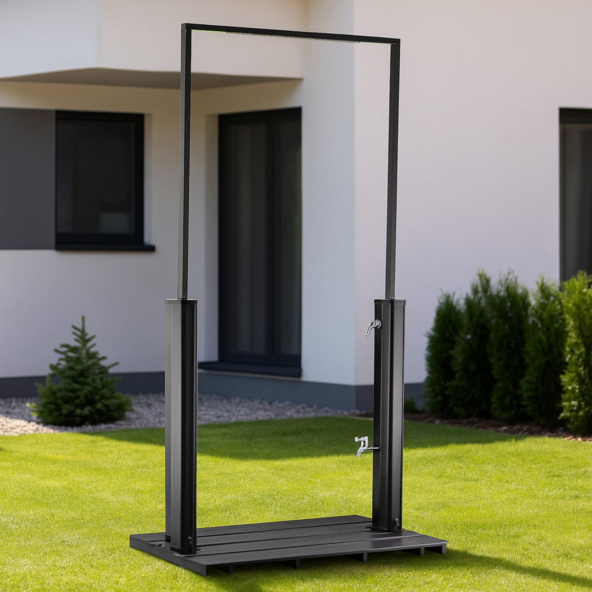 Das Octagon 40L Solar-Duschportal beeindruckt durch seine außergewöhnliche achteckige Form und das elegante, matte Schwarz. Der großzügige Durchgangsrahmen macht diese Solardusche nicht nur zu einer praktischen Outdoor-Dusche, sondern auch zu einem architektonischen Highlight für Garten, Pool oder Wellnessbereich.