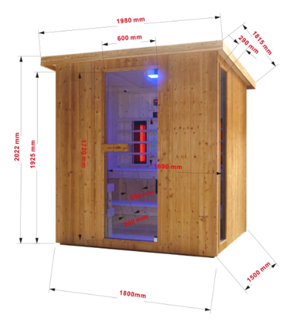 Einfache Bedienung: Die Steuerung der Infrarotkabine und der traditionellen Saunaelemente erfolgt über ein benutzerfreundliches Bedienpanel. Sie können die Temperatur, die Beleuchtung und die Lüftung ganz nach Ihren Wünschen einstellen, um Ihre persönliche Wohlfühlatmosphäre zu schaffen.