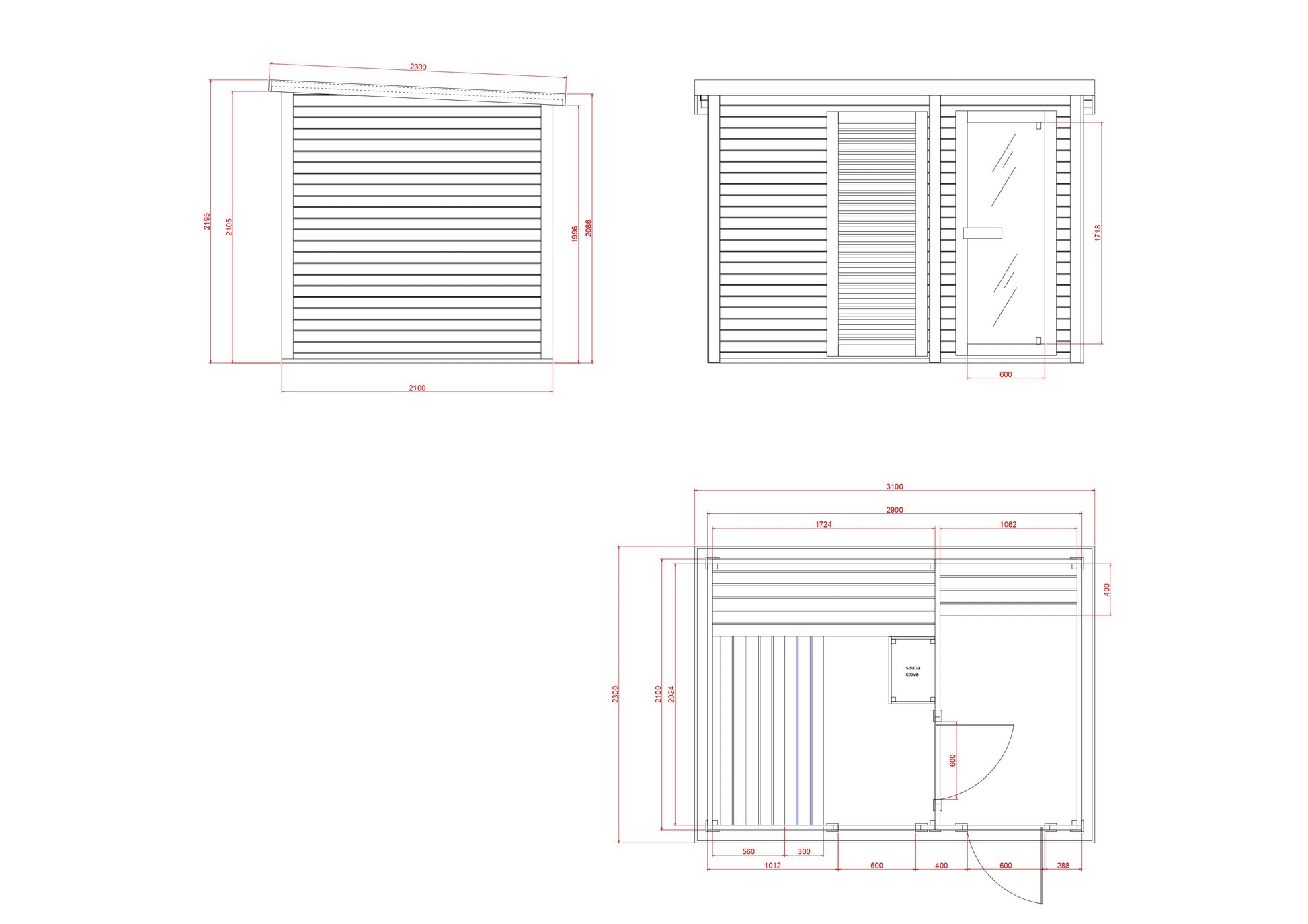 - Außenmaße (BxTxH): 310,0 x 230,0 x 219,5 cm