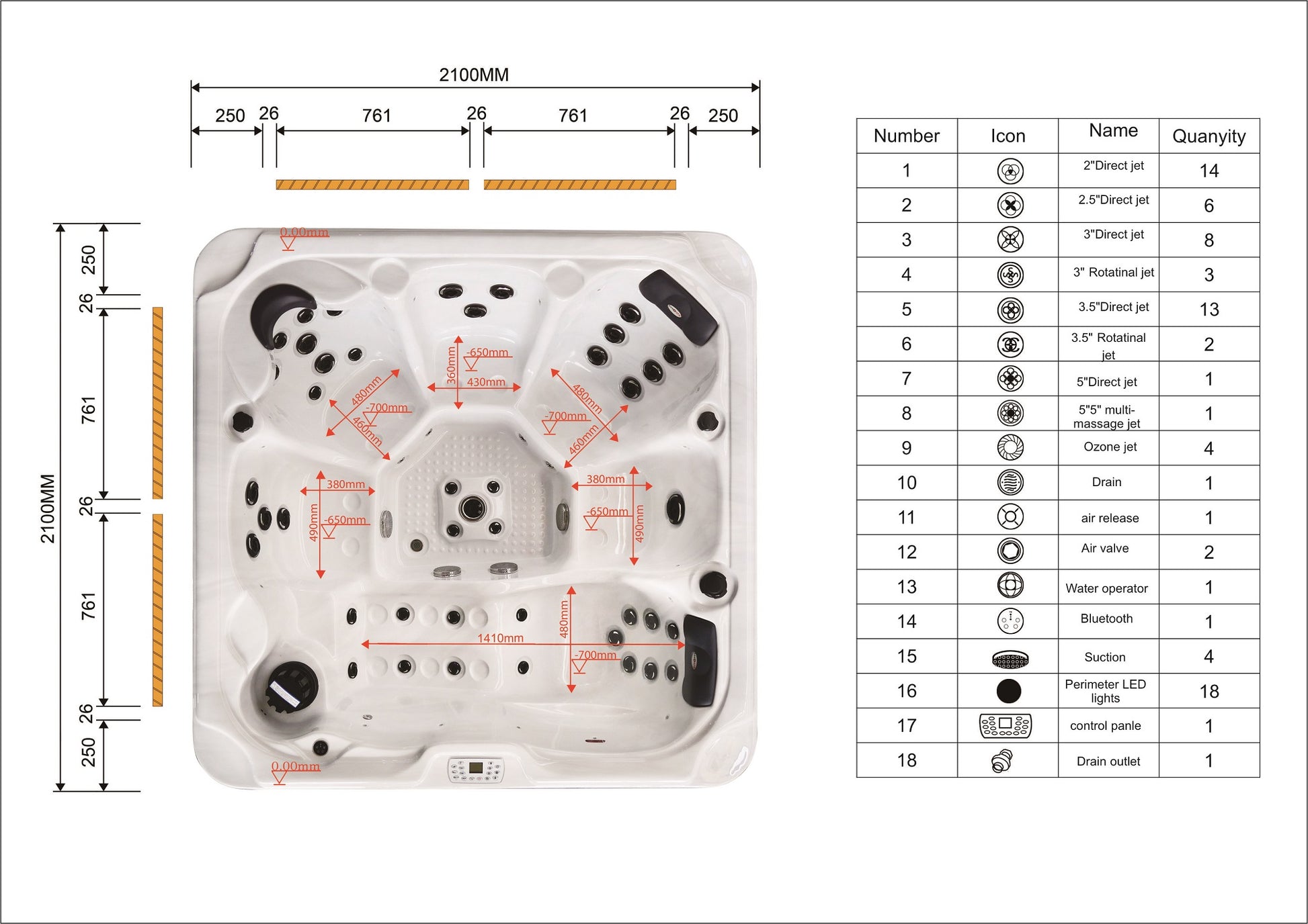 Outdoorwhirlpool OASIS Maxi WHITE MARBLE inkl. Stiege und Abdeckung 210x210x95 cm frostsicher