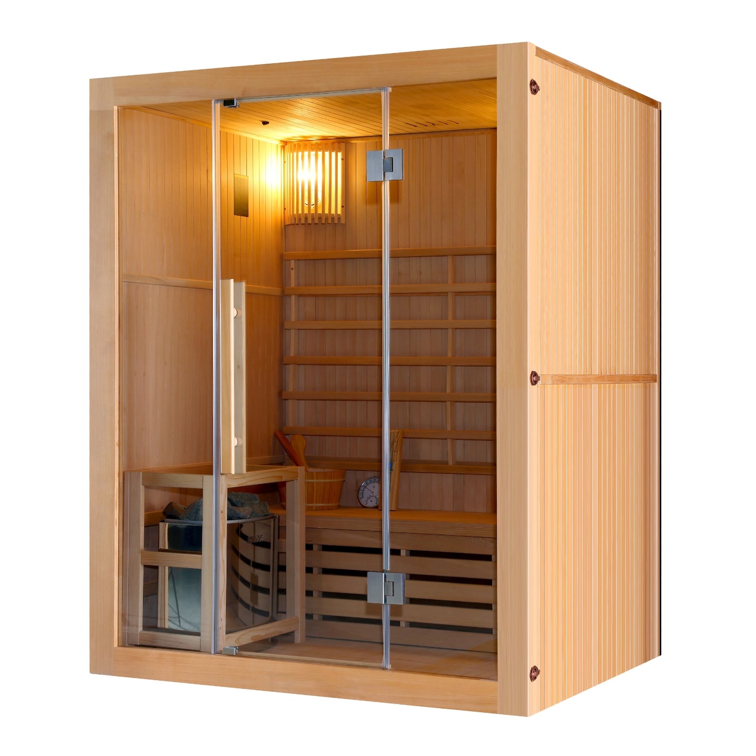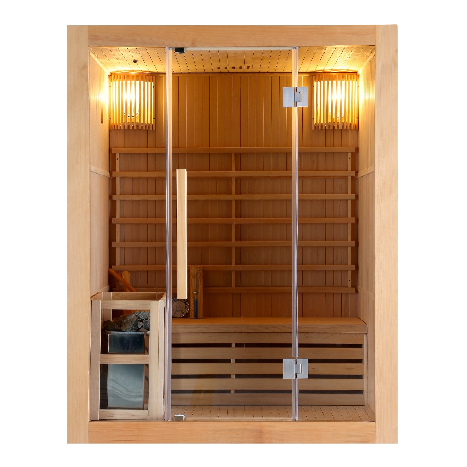 Nach einem anstrengenden Tag in der Arbeit, nach dem Sport oder einfach nur zur Entspannung, in die Sauna zu gehen wirkt manchmal Wunder. Die Sauna ist für zwei Personen konstruiert und der Ofen, die Steine, der Schöpfer und der Kübel sind inkludiert. Auch ein Thermometer und eine Sanduhr sind im Lieferumfang enthalten.