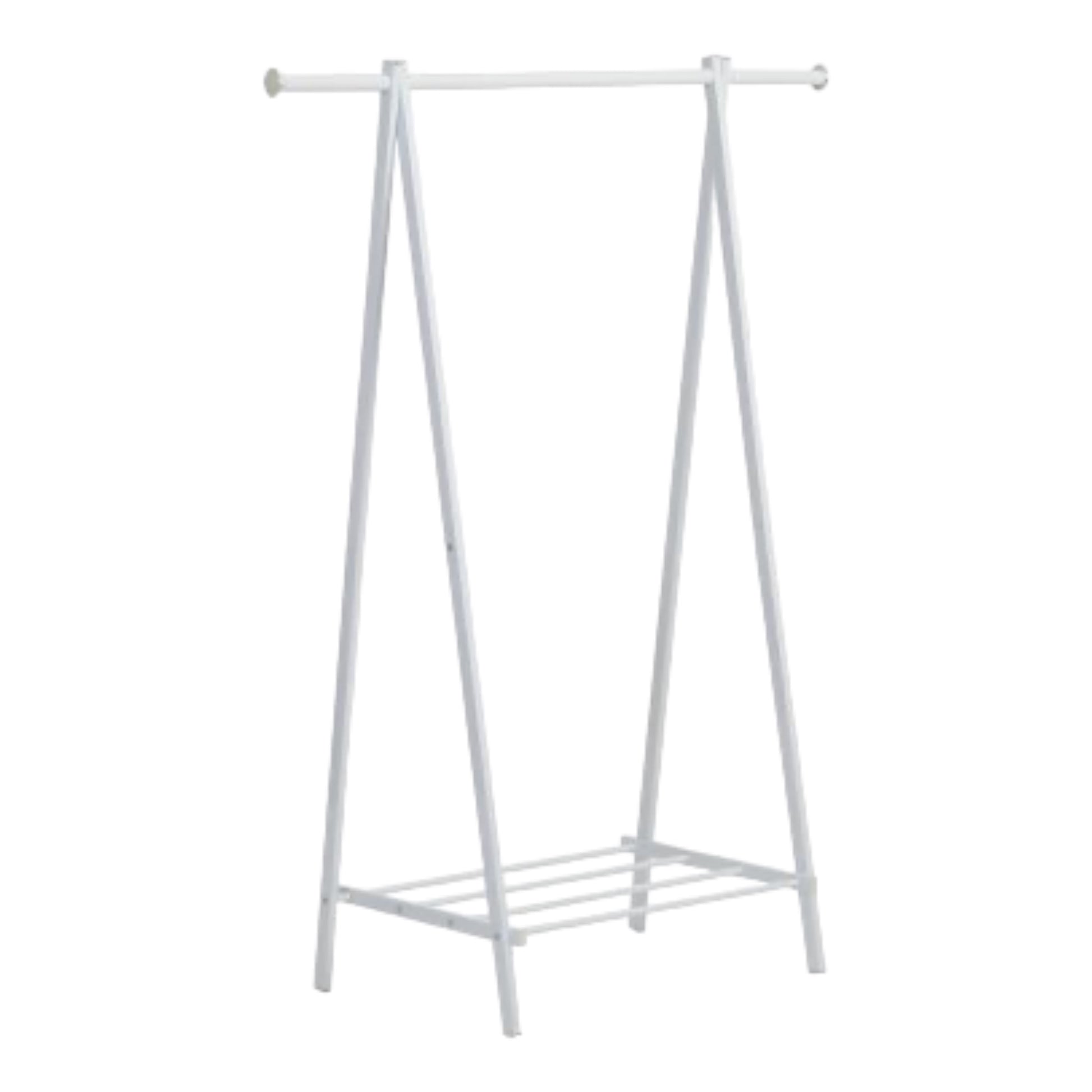 Die Kleiderstange Steve ist zugleich eine praktische und dekorative Ergänzung für Ihre Wohnräume. Die Ablagefläche und Metallstange bieten viel Platz, um Schuhe abzustellen oder Jacken, Mäntel und Taschen aufzuhängen. So bleiben Schlafzimmer, Flur oder Garderobe immer aufgeräumt.